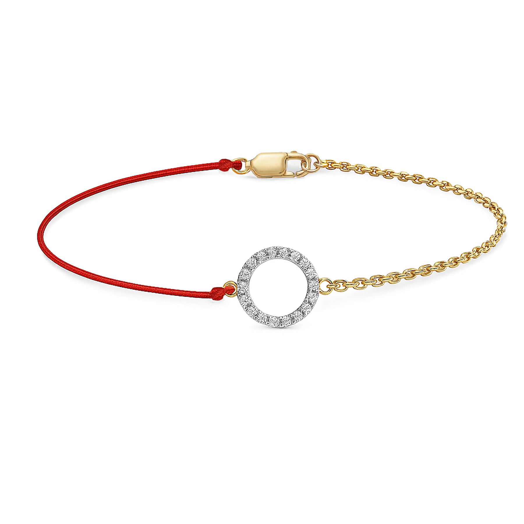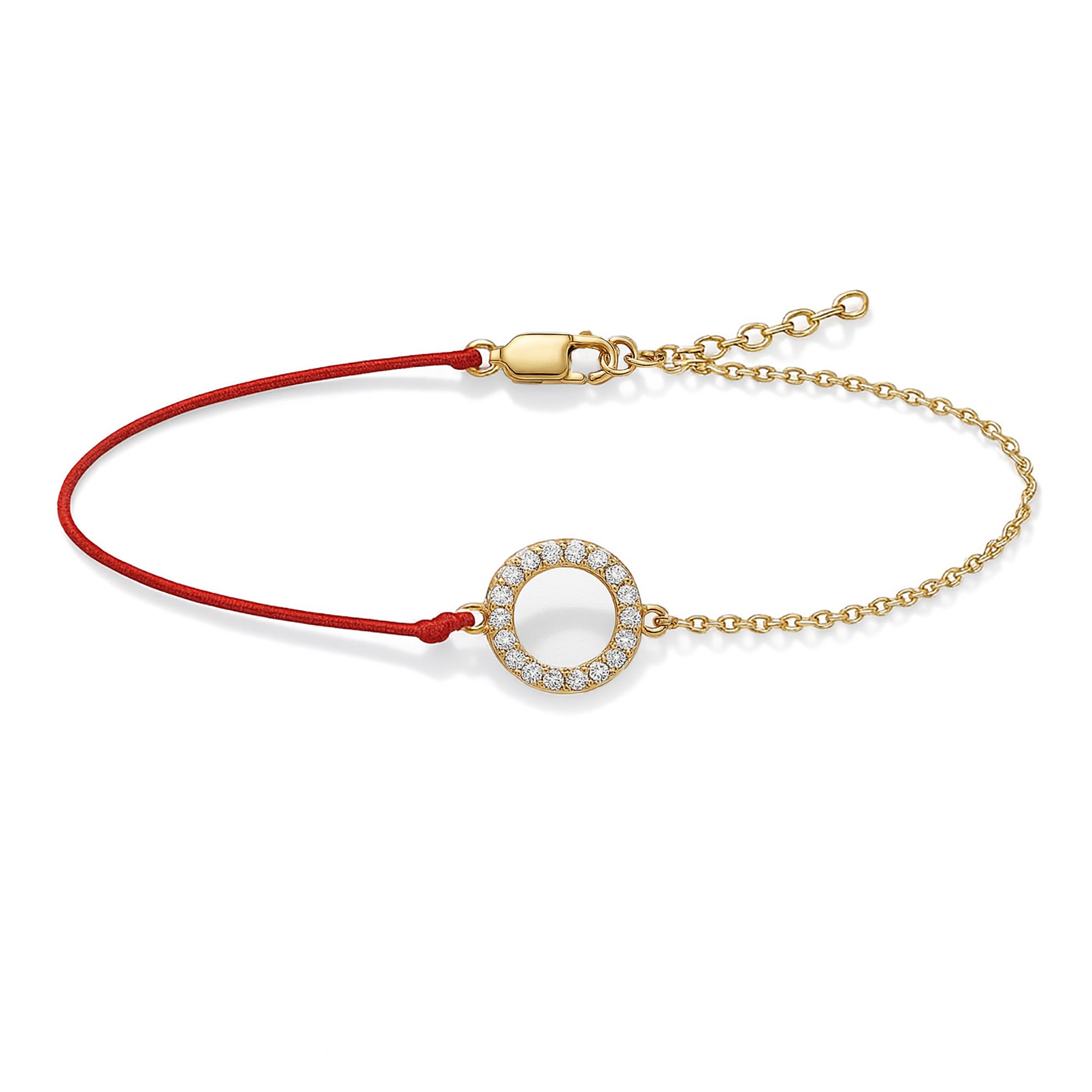 Red String Bracelet with Diamond Accented Circle