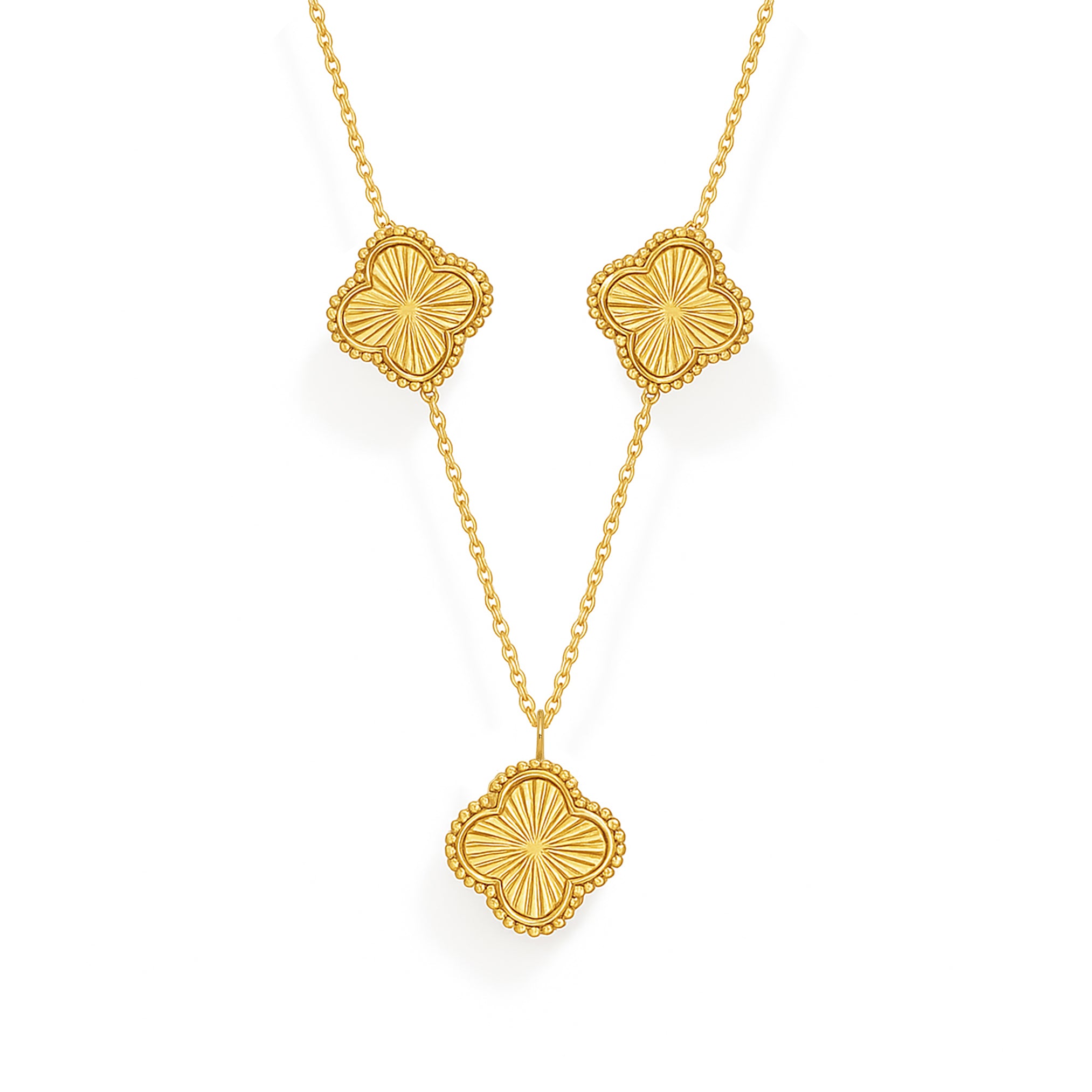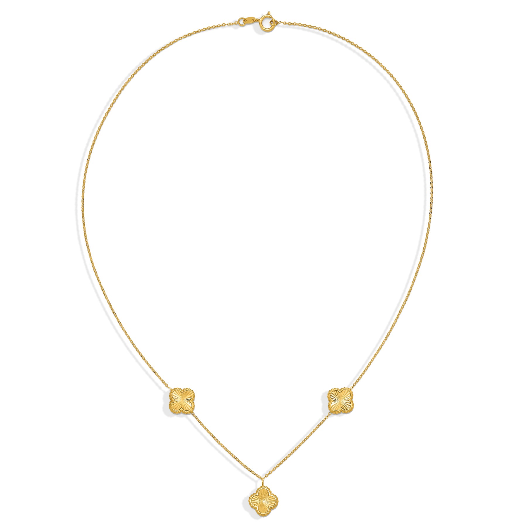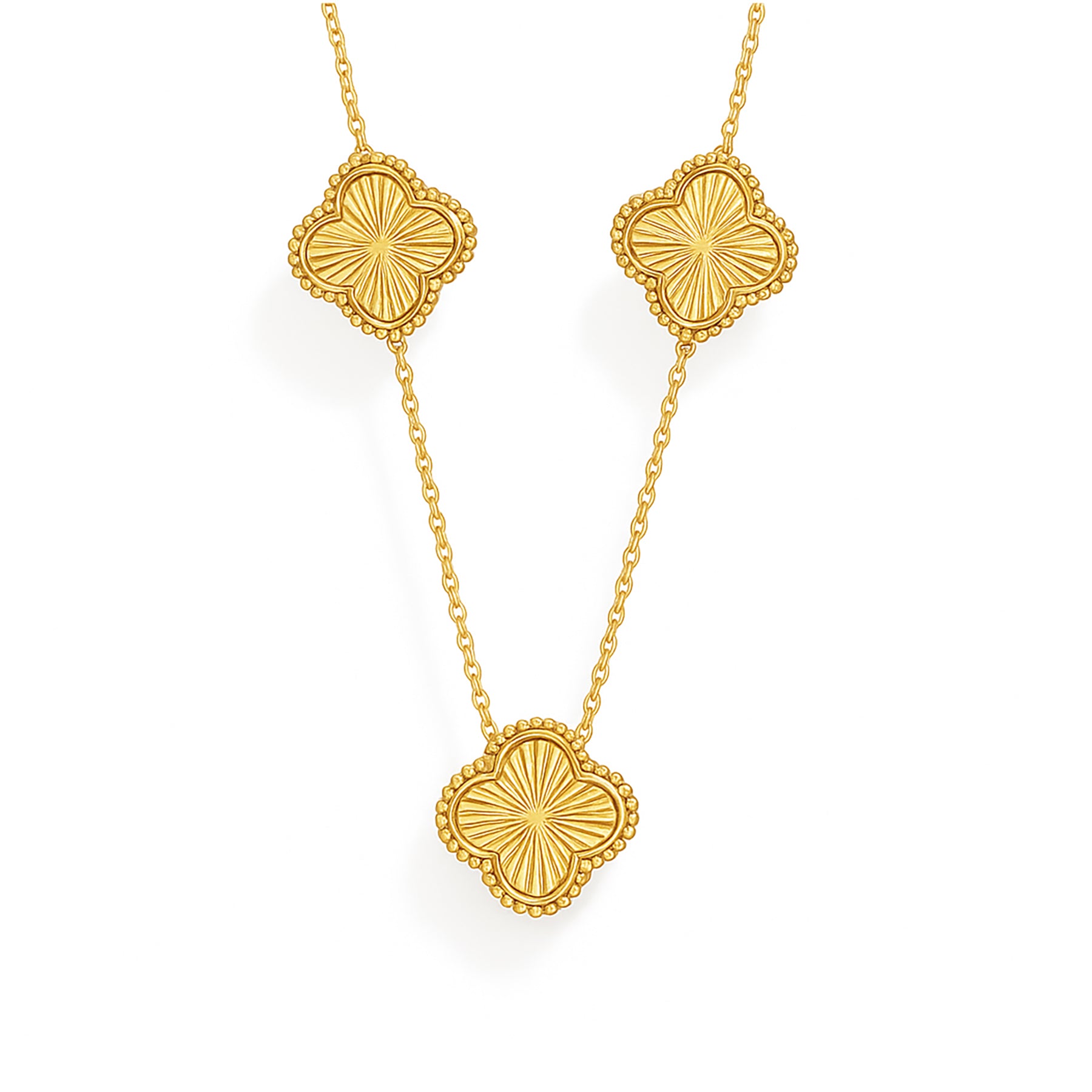14K Gold Fluted Clover Station Necklace