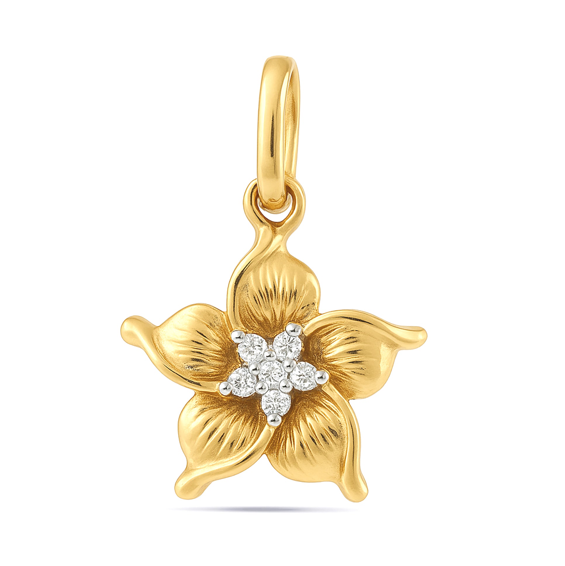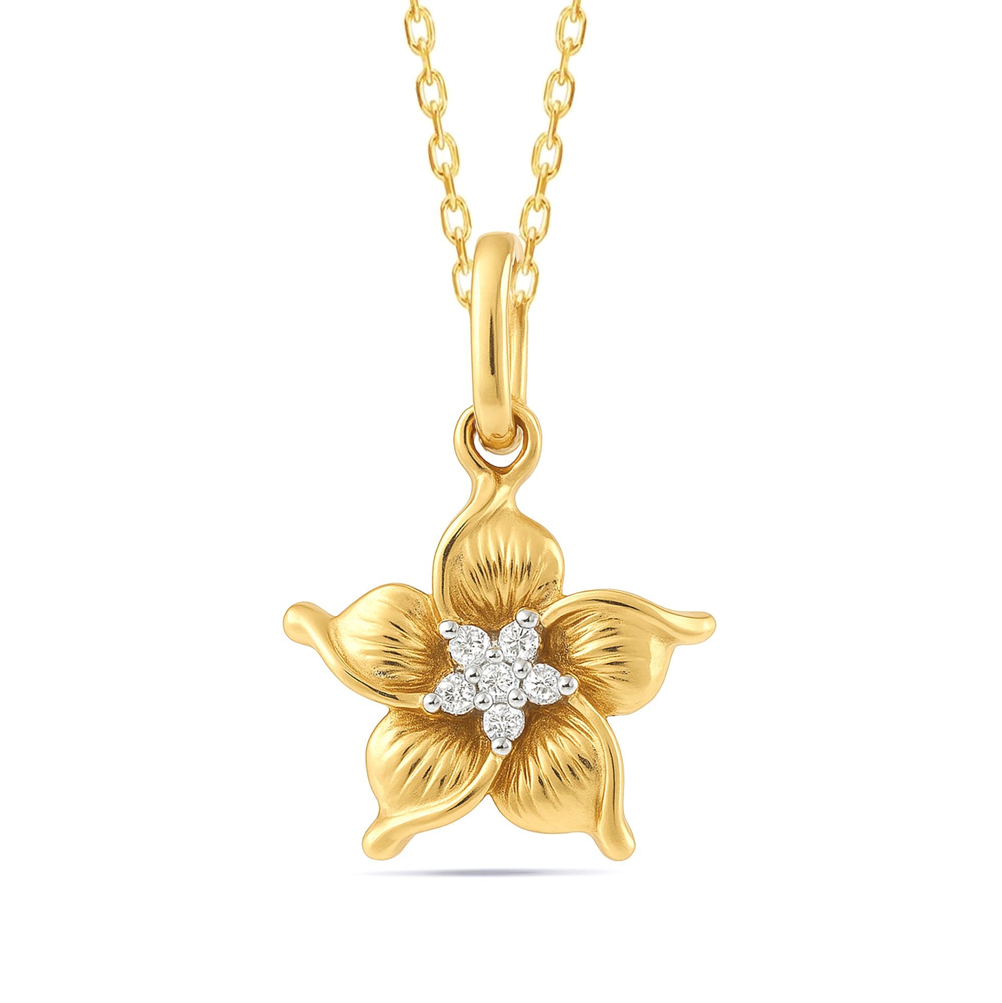 14K Yellow Gold Natural Diamond Plumeria Flower Pendant Necklace
