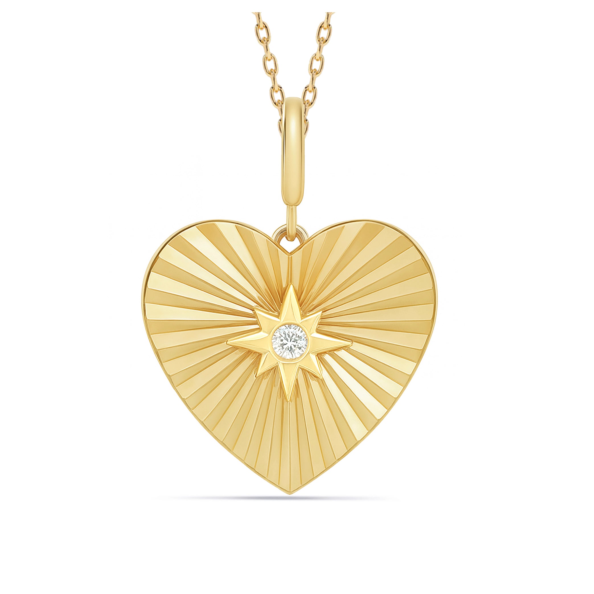 14K Gold Fluted Heart Necklace with North Star Accent