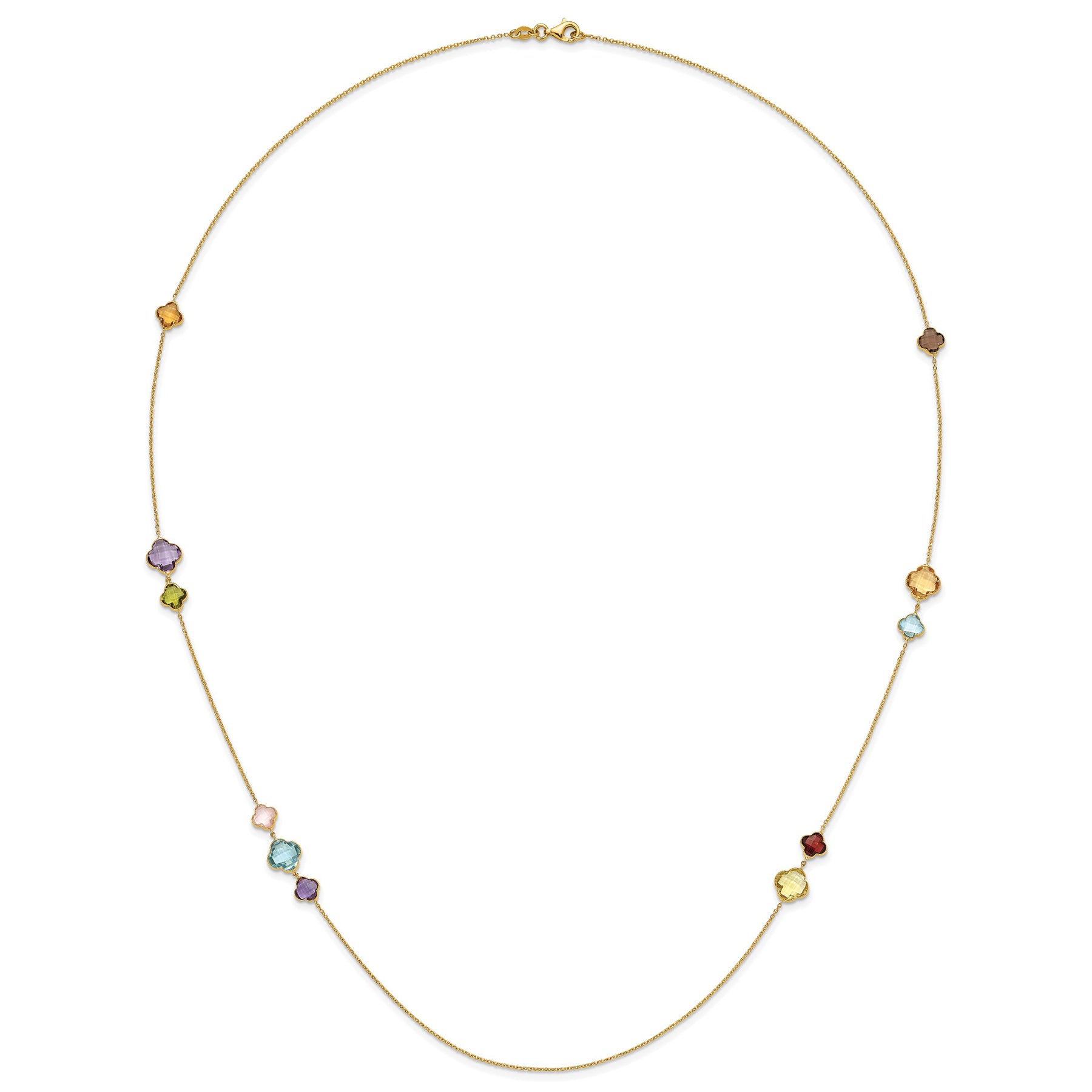 14K Gold Clover Station Long Necklace 30 inch – Multicolor Rainbow Necklace