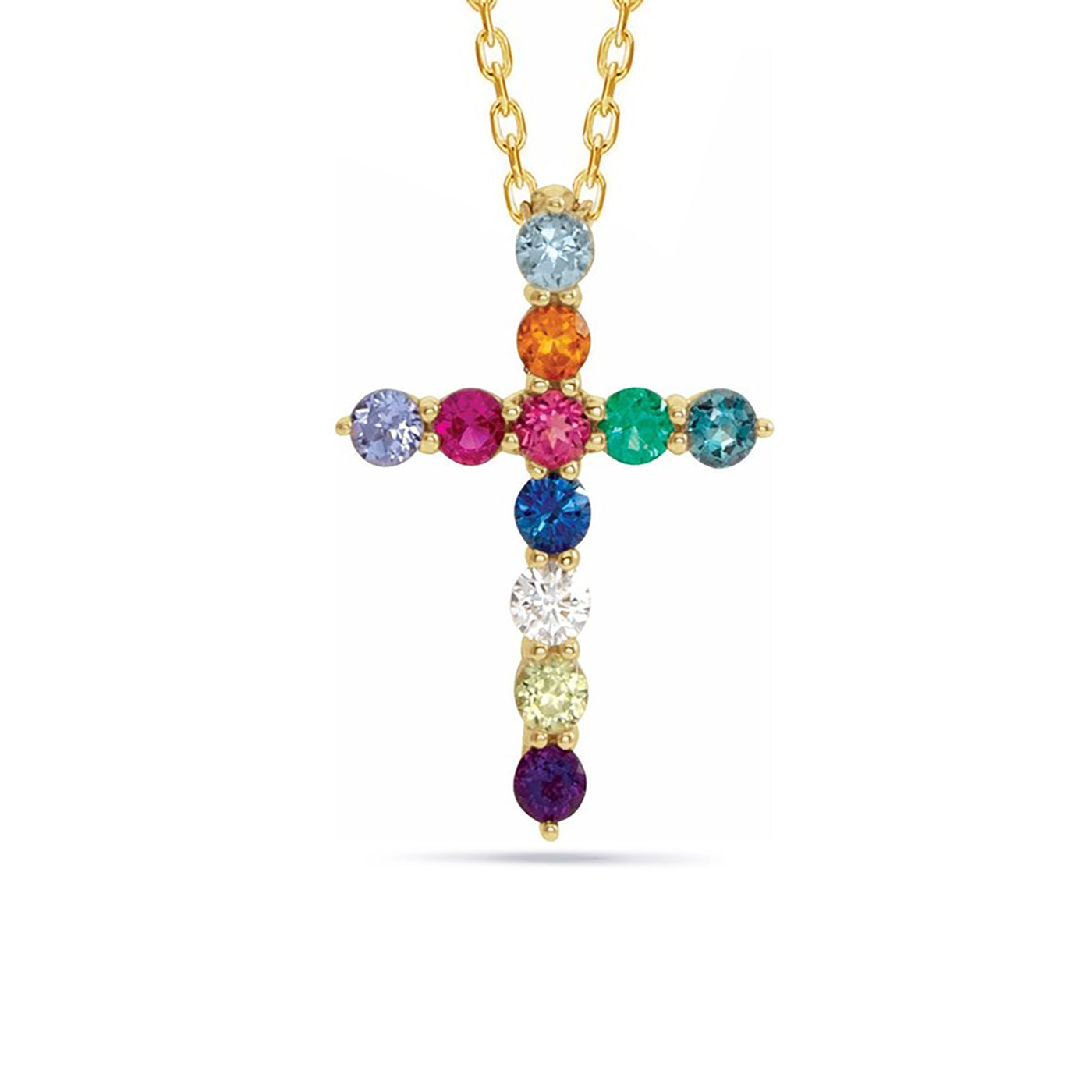 14K Solid Gold Rainbow Cross Necklace