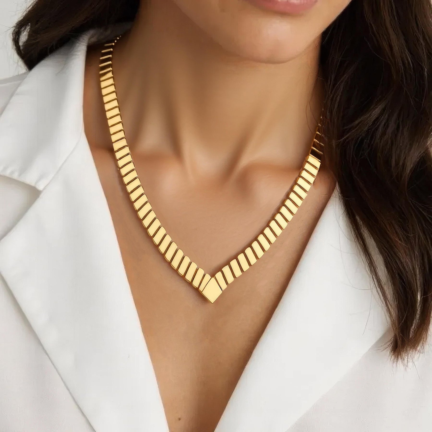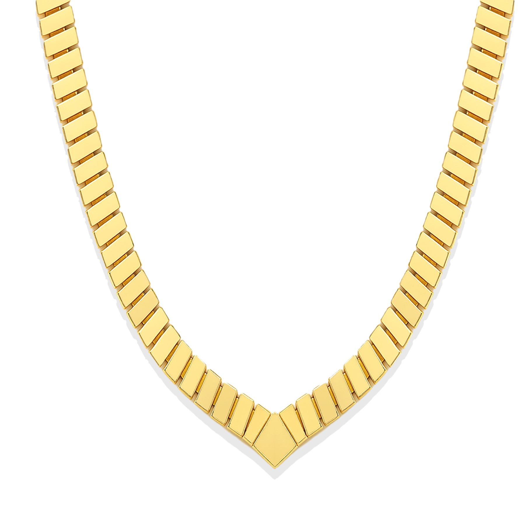 14K Solid Gold V-Bar Herringbone Necklace | Luxury Necklace