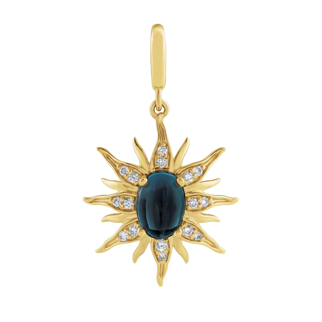 14K Solid Gold Removable Sunburst Charm Pendant with Diamond & London Blue Topaz