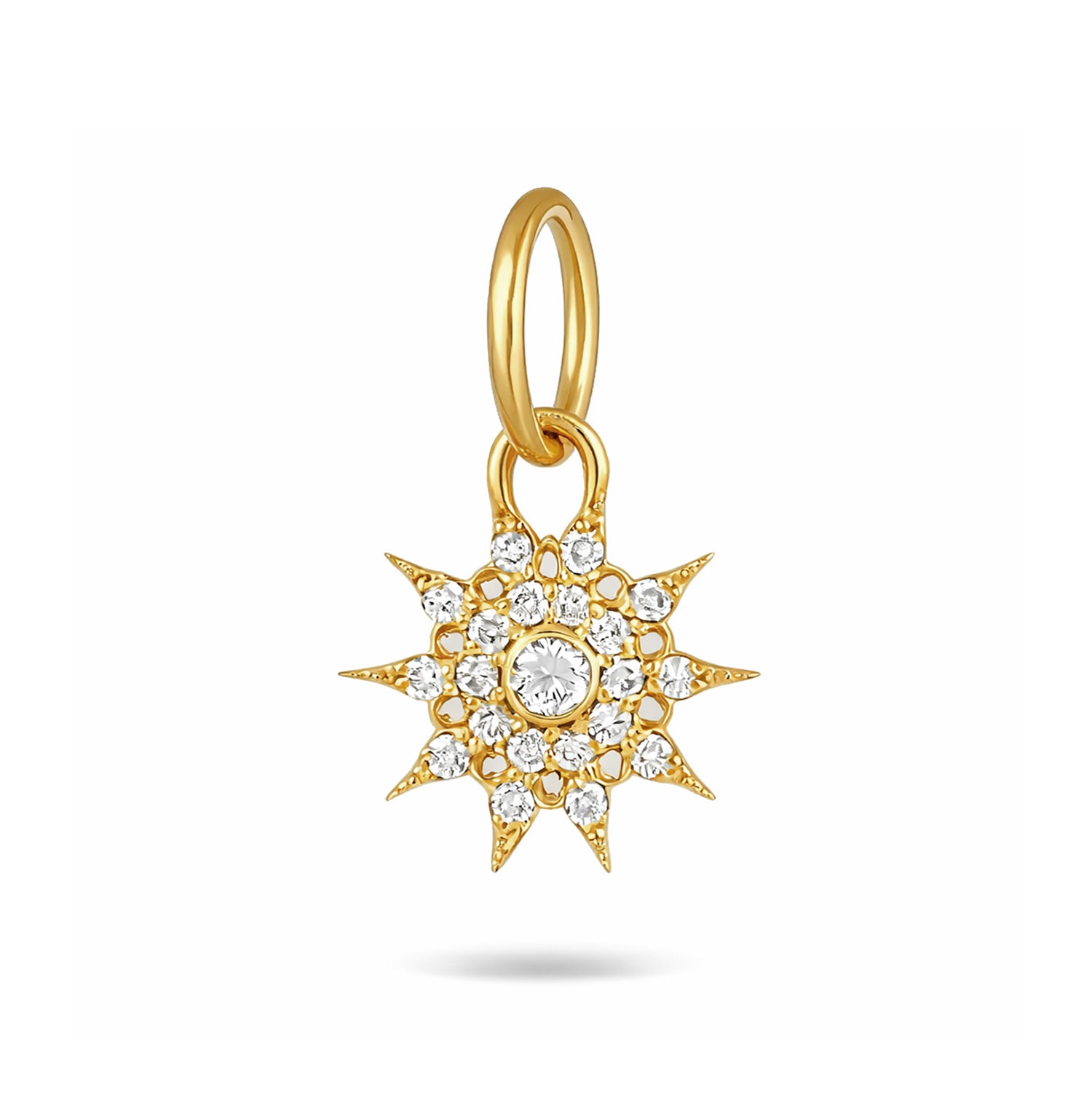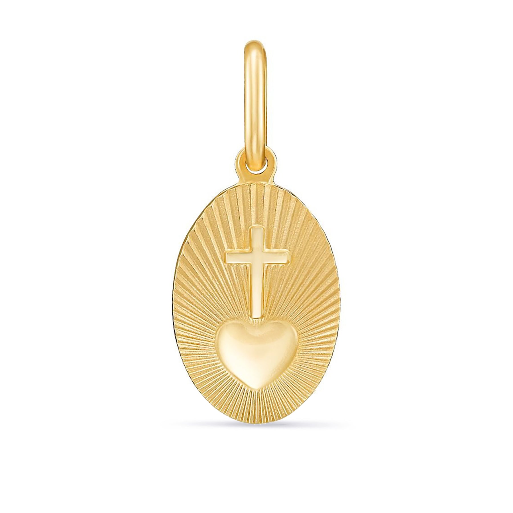 14K Gold Fluted Sunburst Cross Medallion Charm Pendant