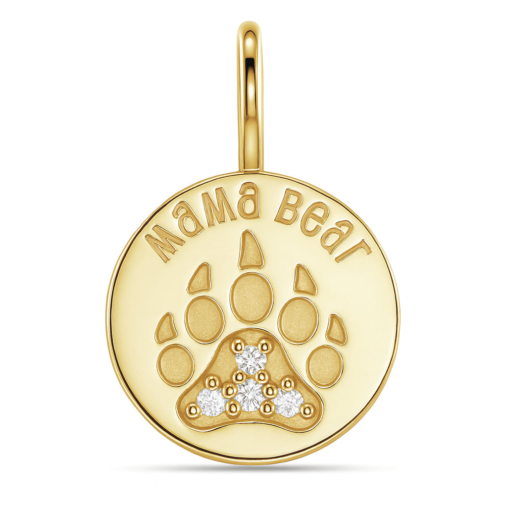 14K Gold Mama Bear Pendant with Natural Diamonds