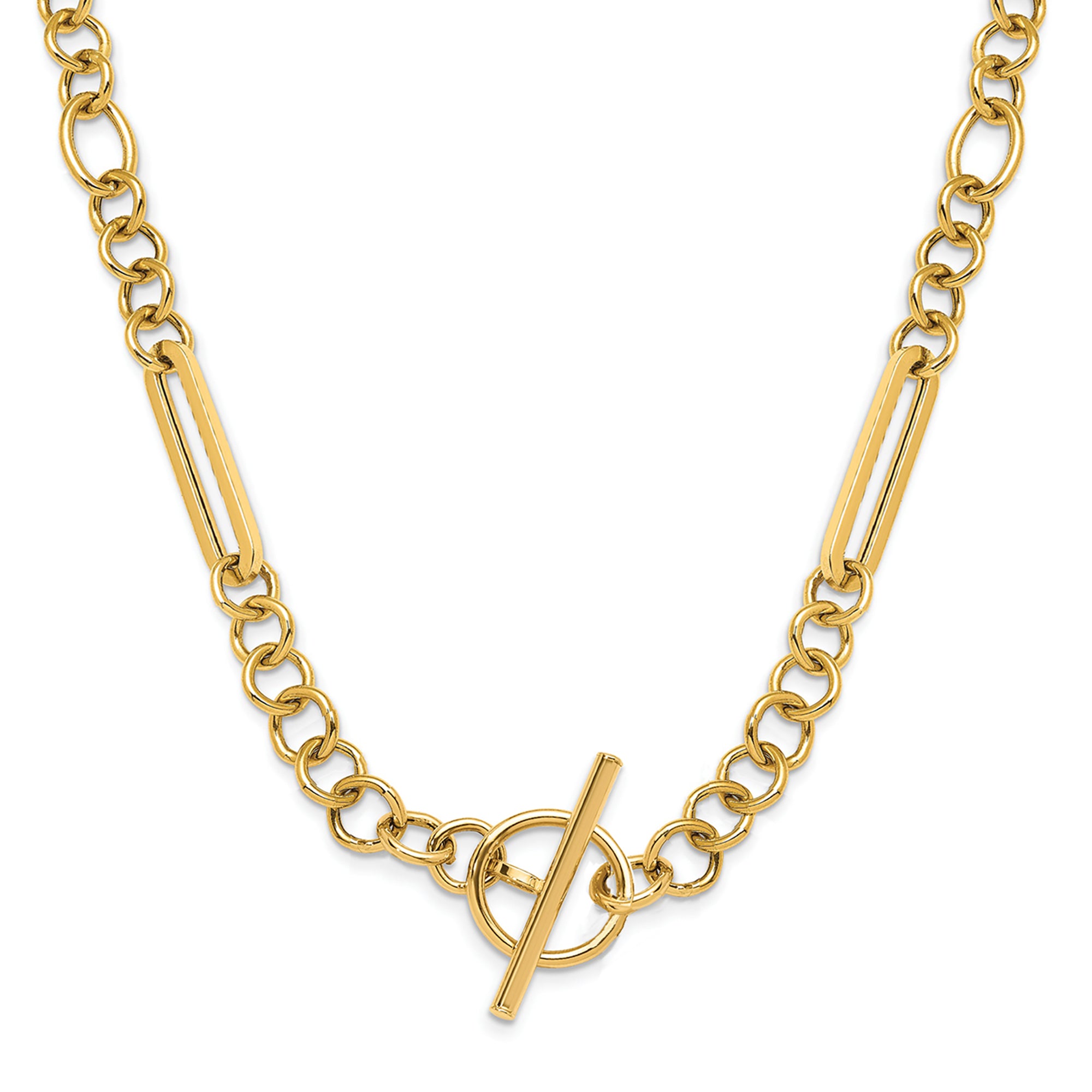 14K Gold Paperclip & Rolo Mixed Linked Chain Toggle Necklace Made in Italy