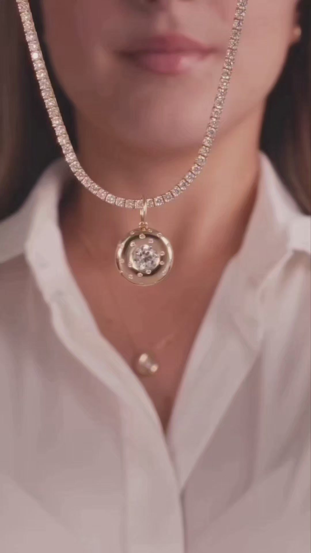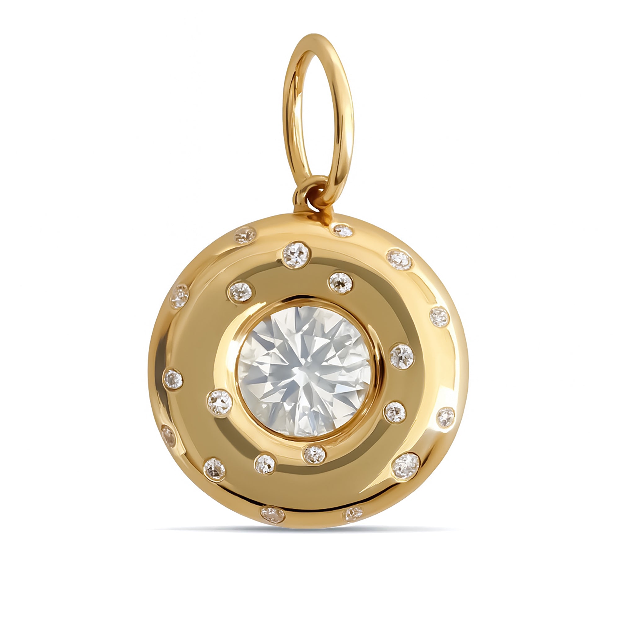 14K Gold Scattered Diamond Dome Cloud Bezel Charm Pendant