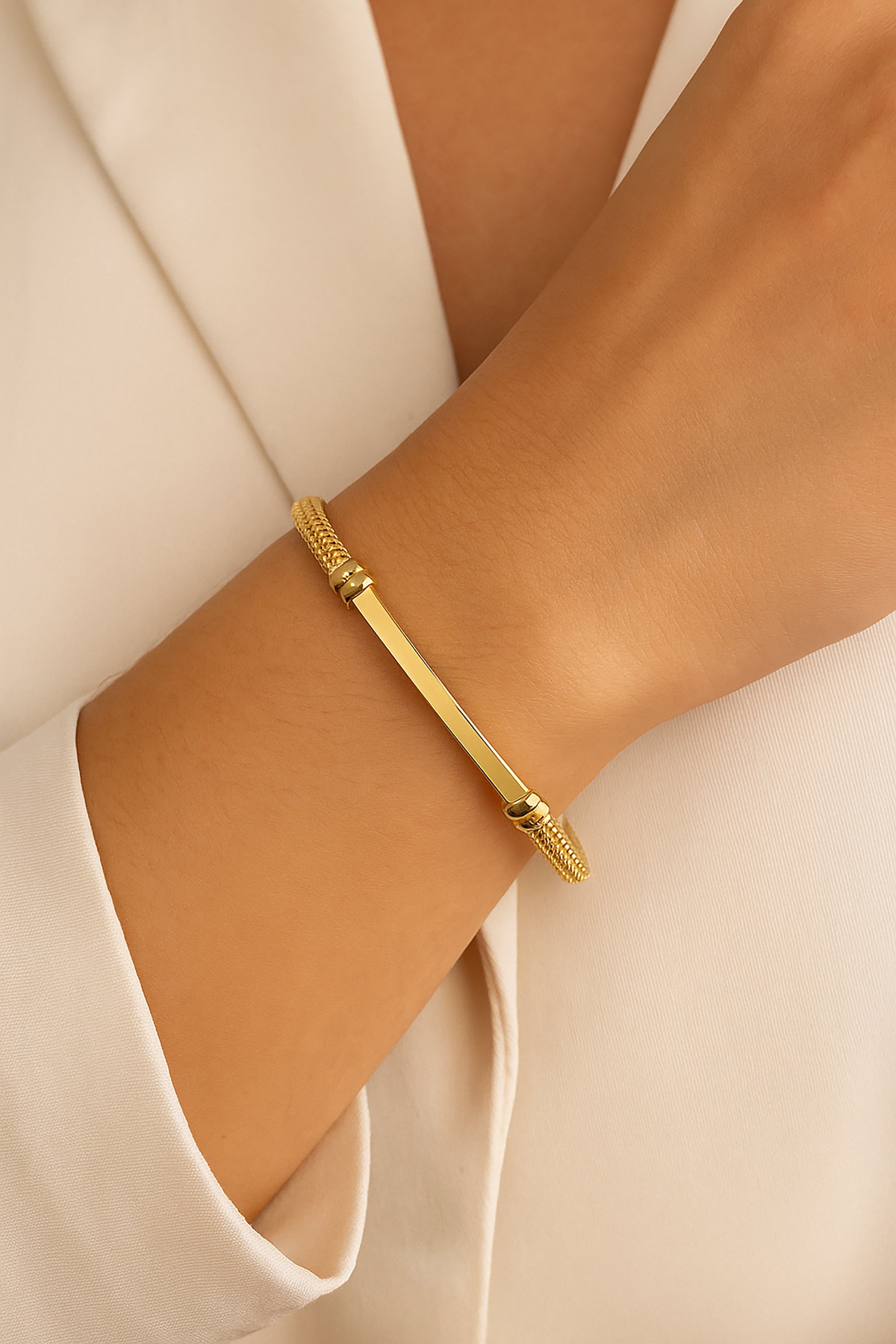 14K Solid Gold Flexible Cuff Bangle – Italian Chunky Statement Bracelet