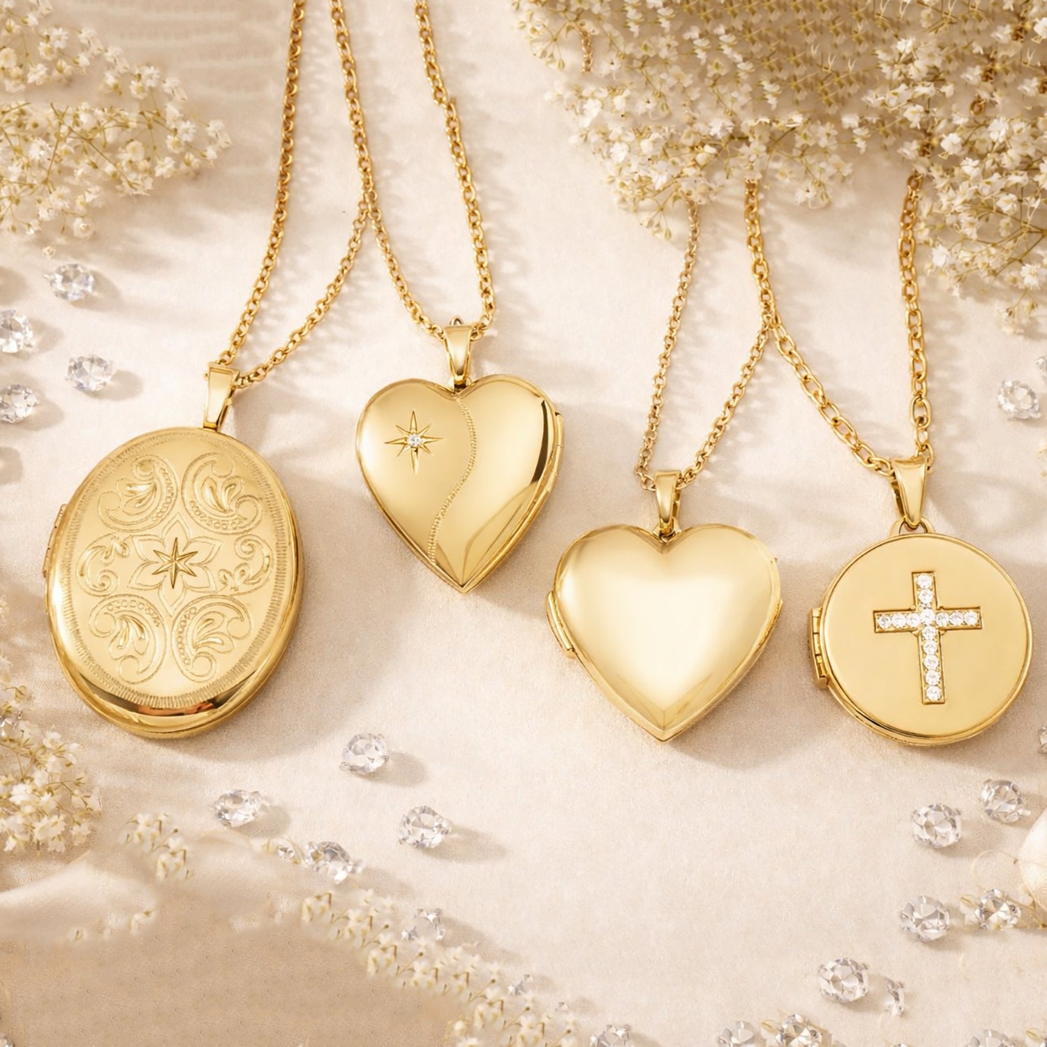 14K Gold Lucky Clover Station Necklace