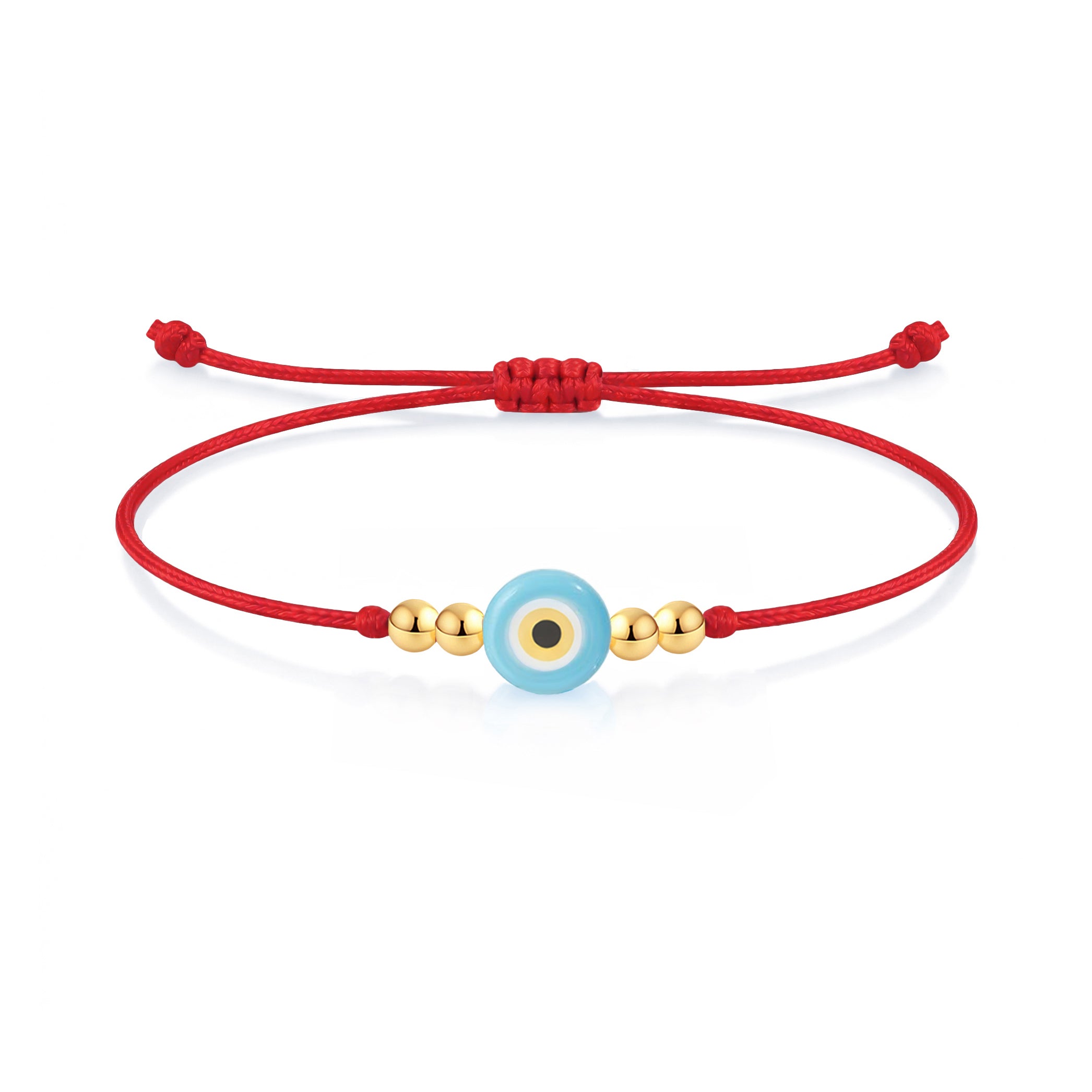 14K Solid Gold Evil Eye Red String Bracelet Good Luck Protection