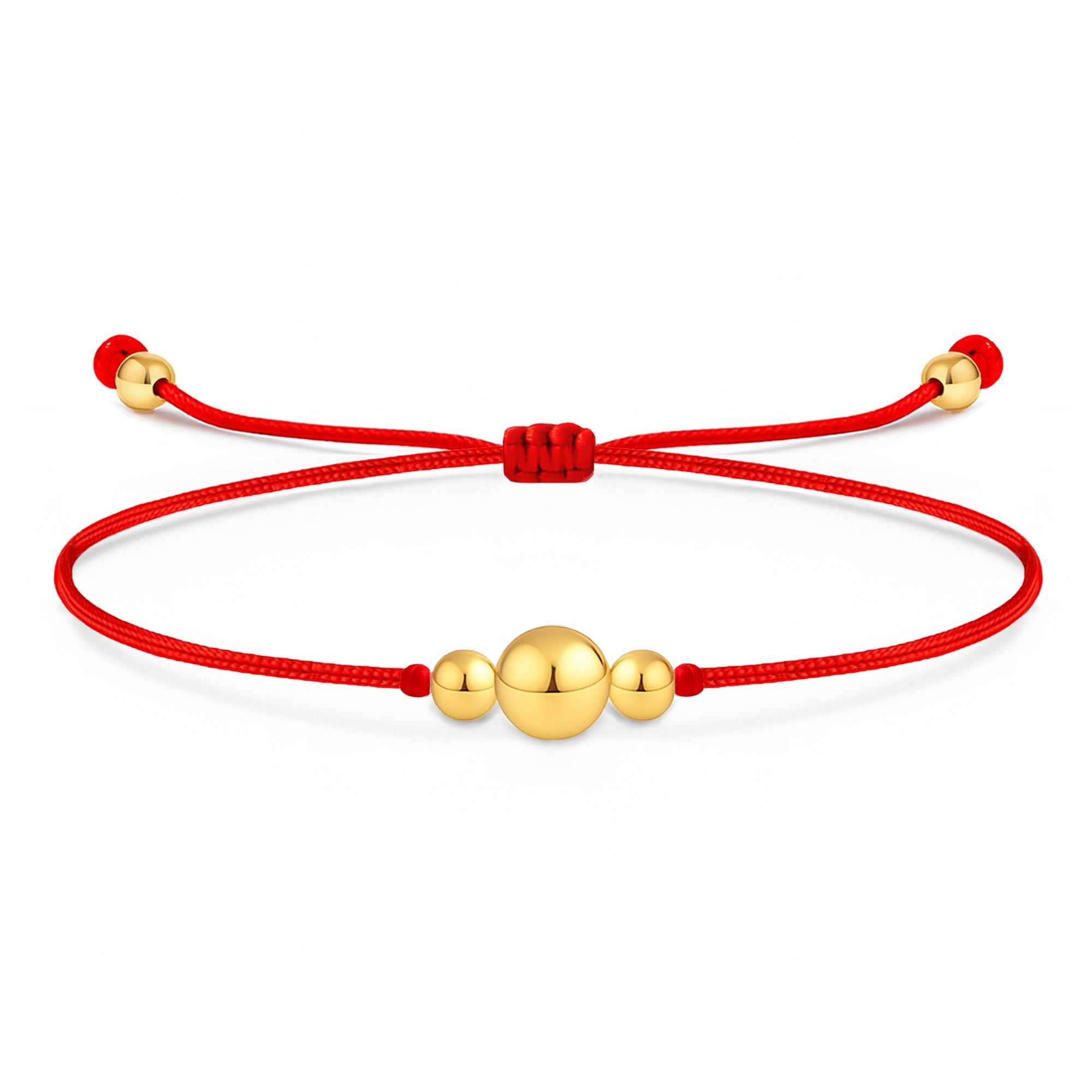 Red String Bracelet 14K Solid Gold Beaded Karma Kabbalah Good Luck Protection