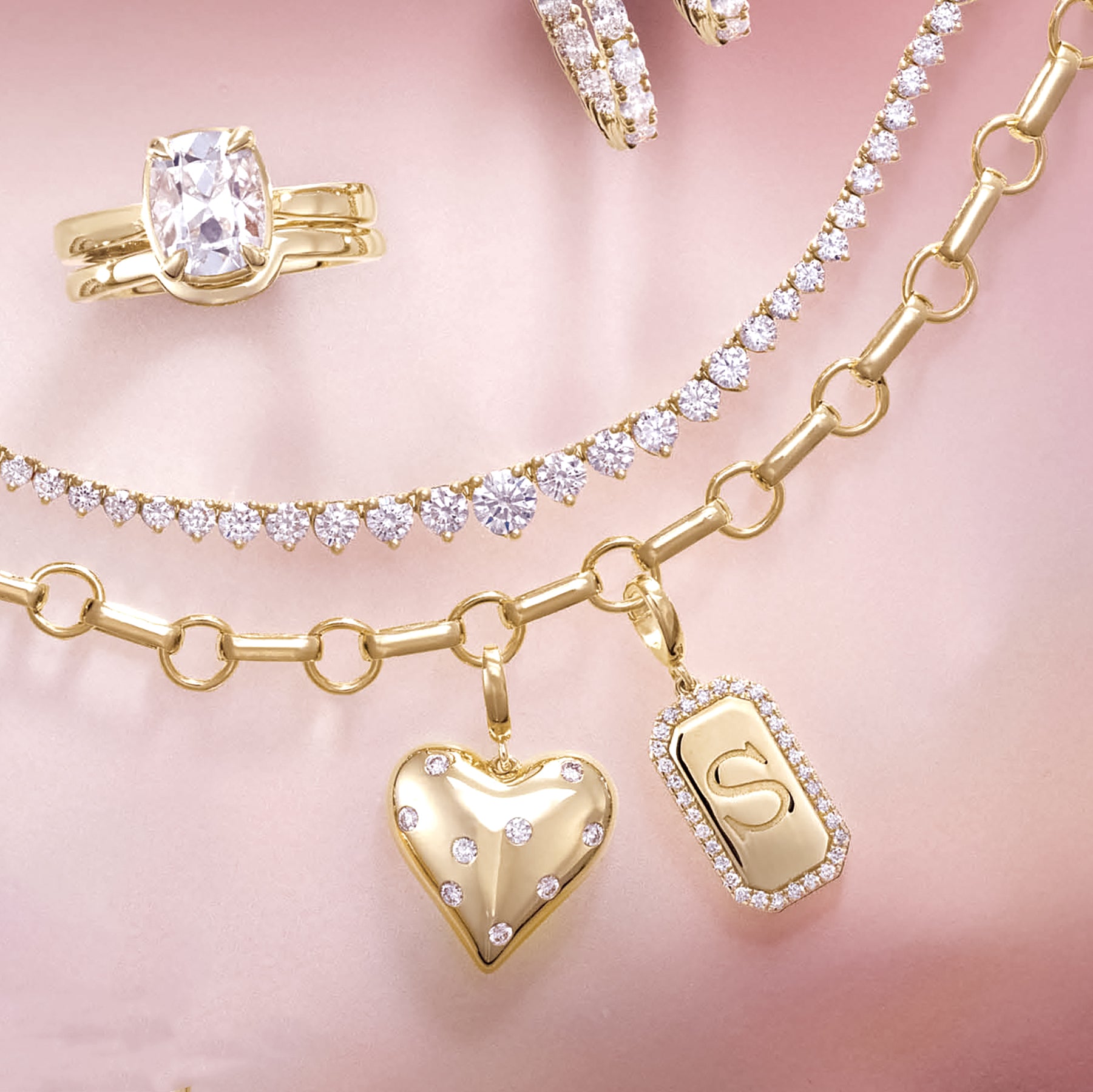 14K Solid Gold Diamond Heart Tubogas Bracelet – Flexible Coil Cuff Bangle