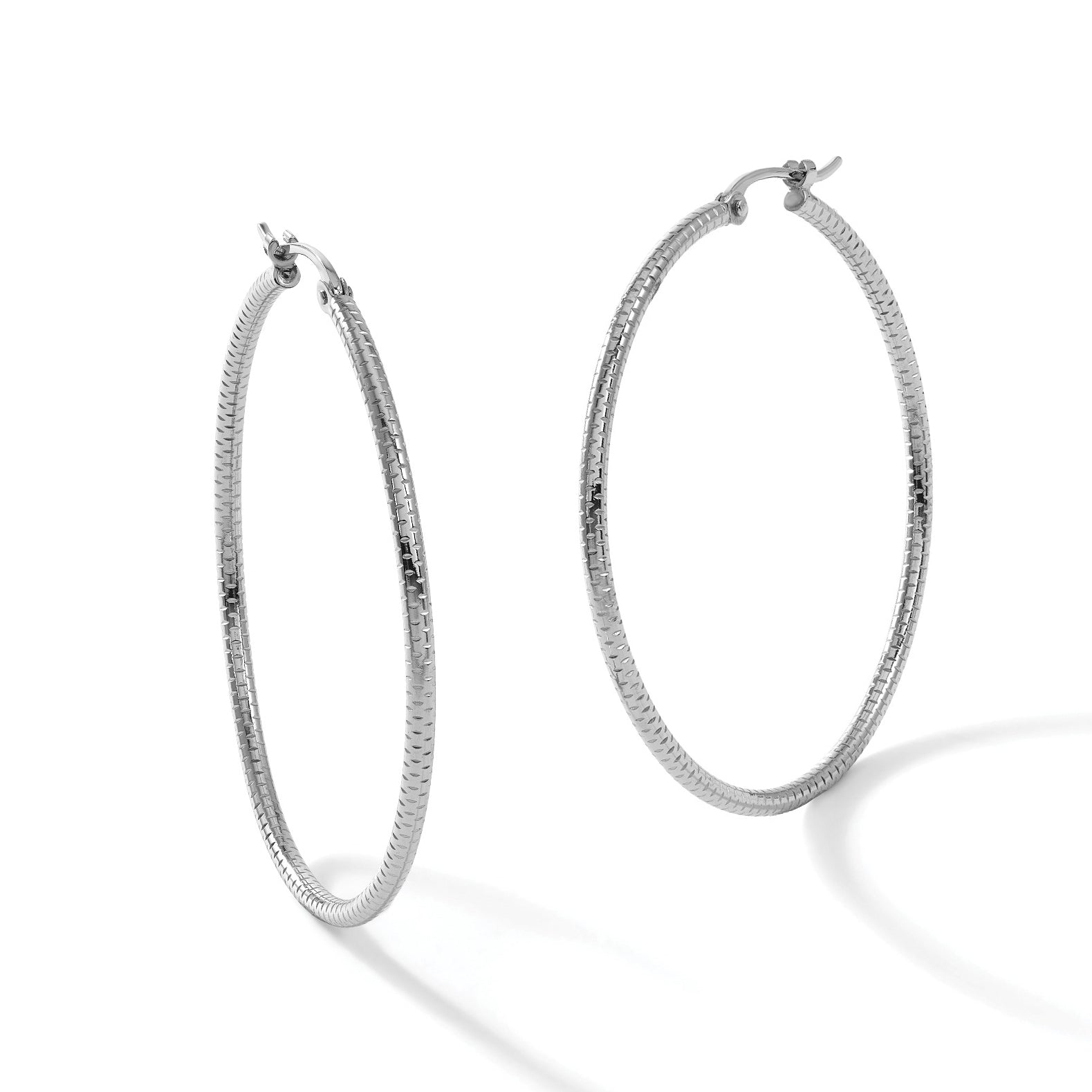 Solid Platinum Hoop Earrings – Classic Textured Round Hoops