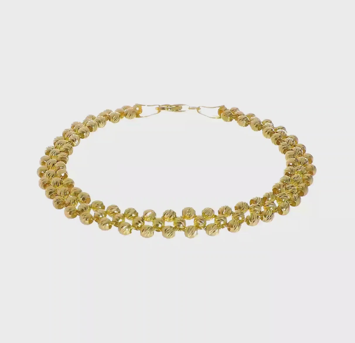 14K Gold Diamond-Cut Beaded Ball Link Bracelet