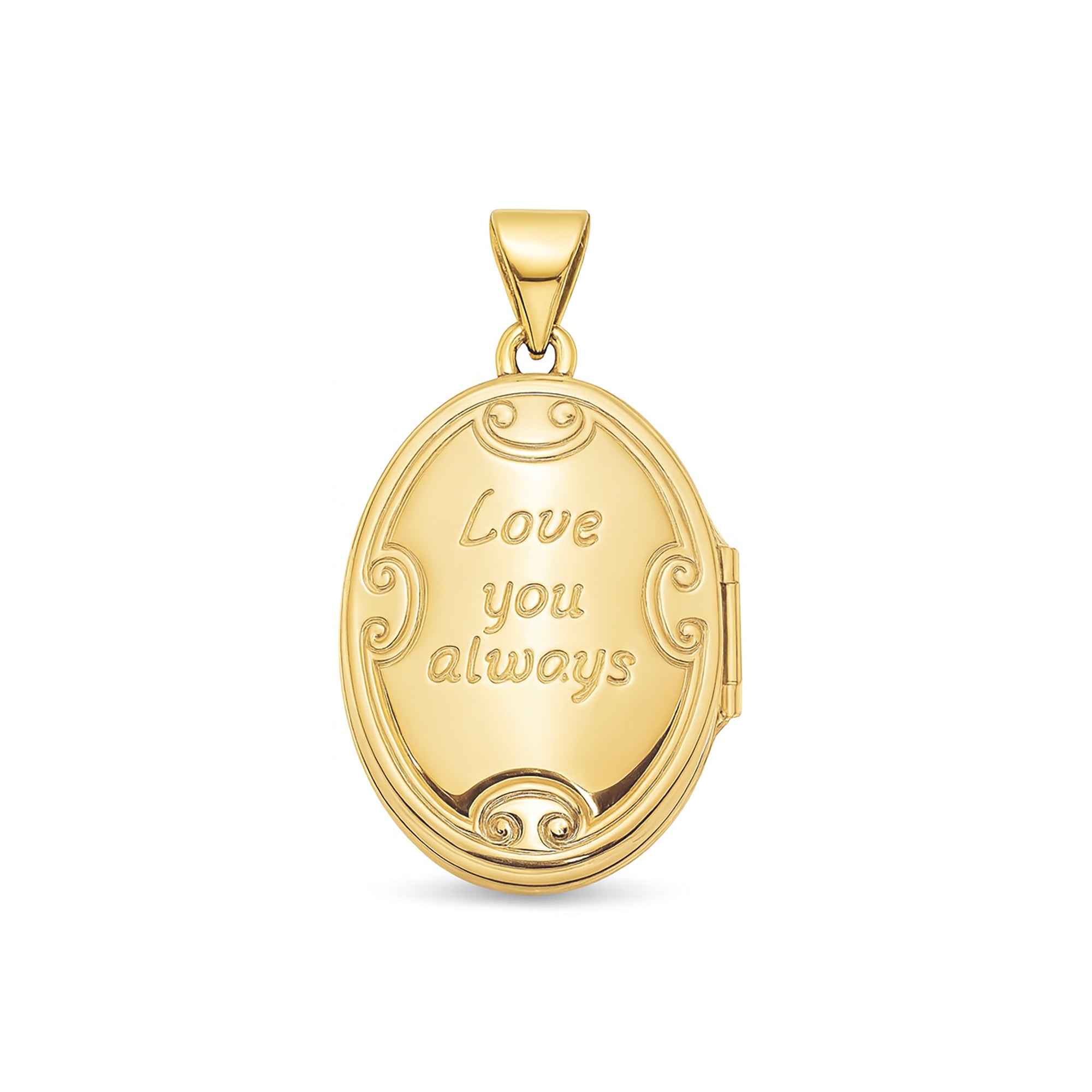 This oval photo locket opens smoothly to hold two cherished pictures or keepsakesāmaking it the perfect gift for someone special or a treasured family heirloom to pass down for generations.