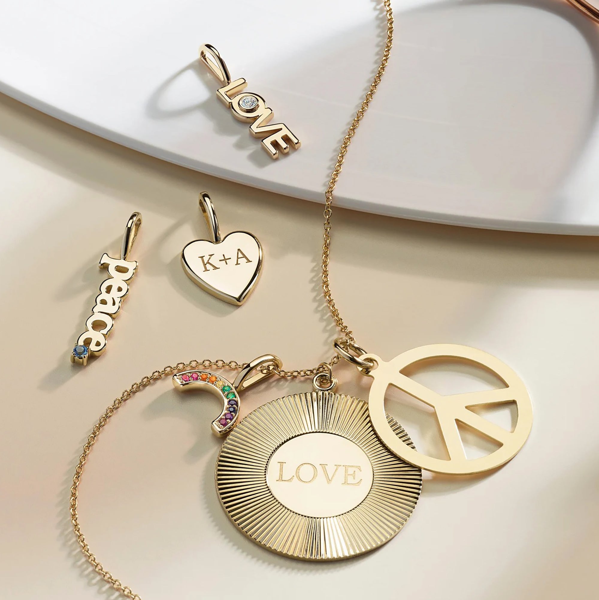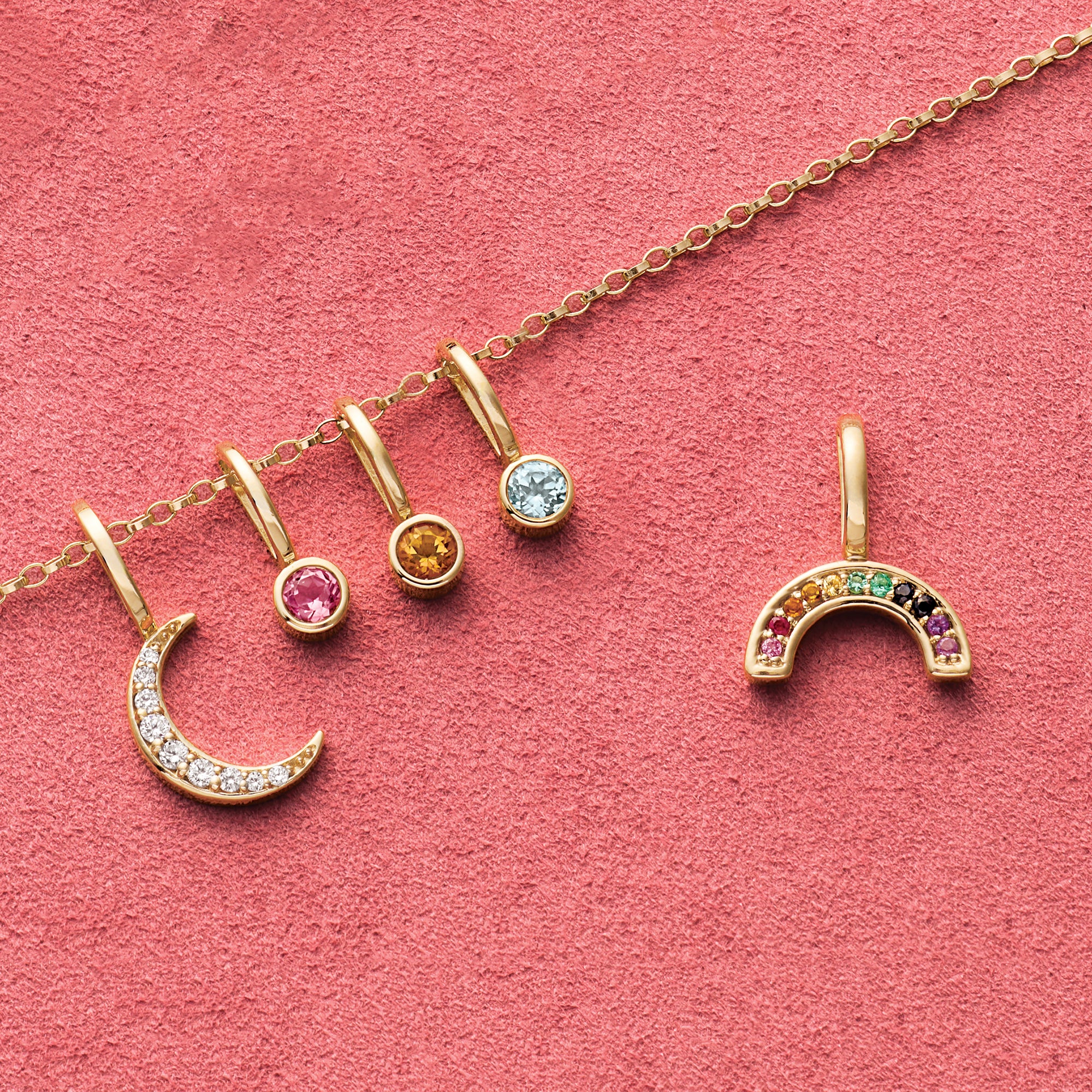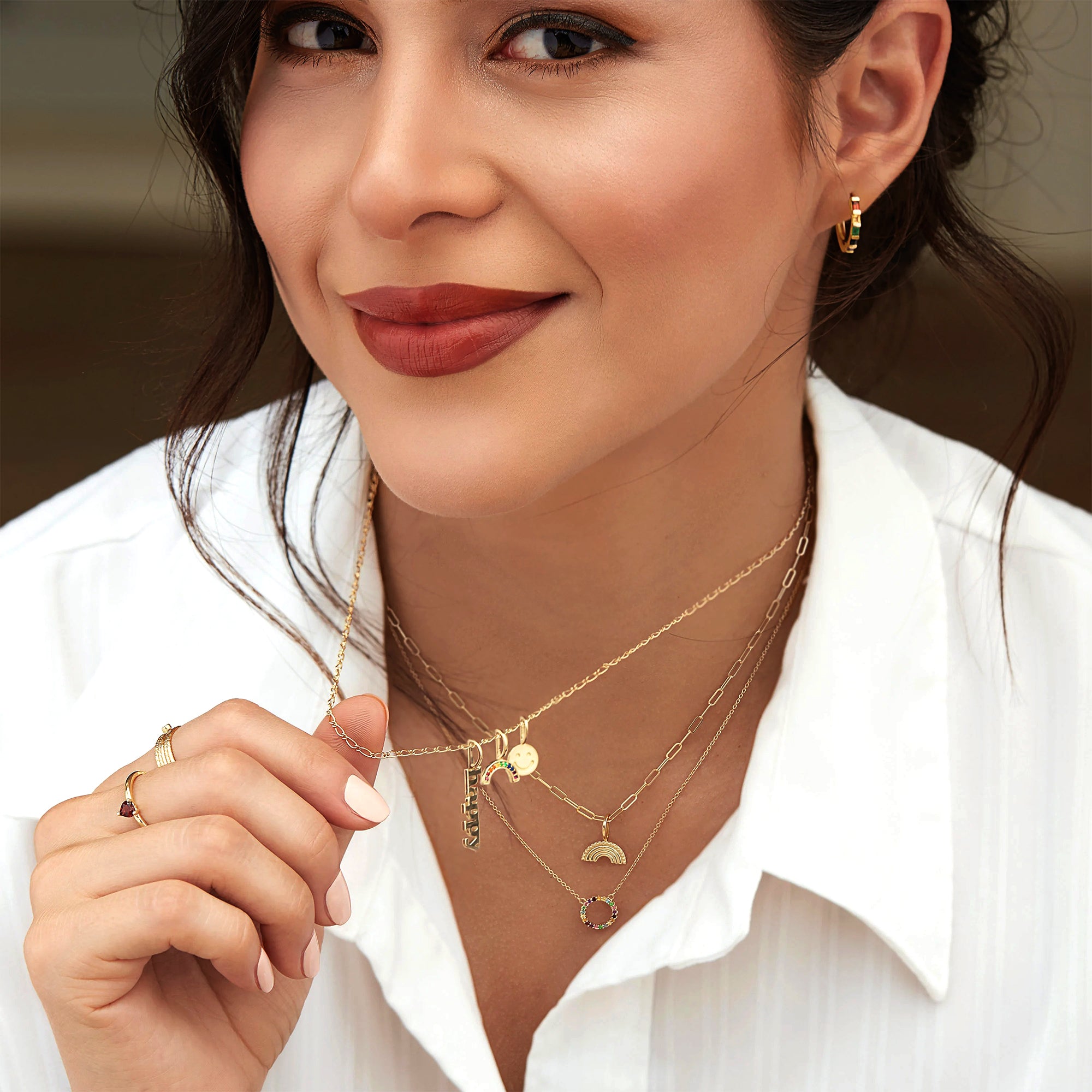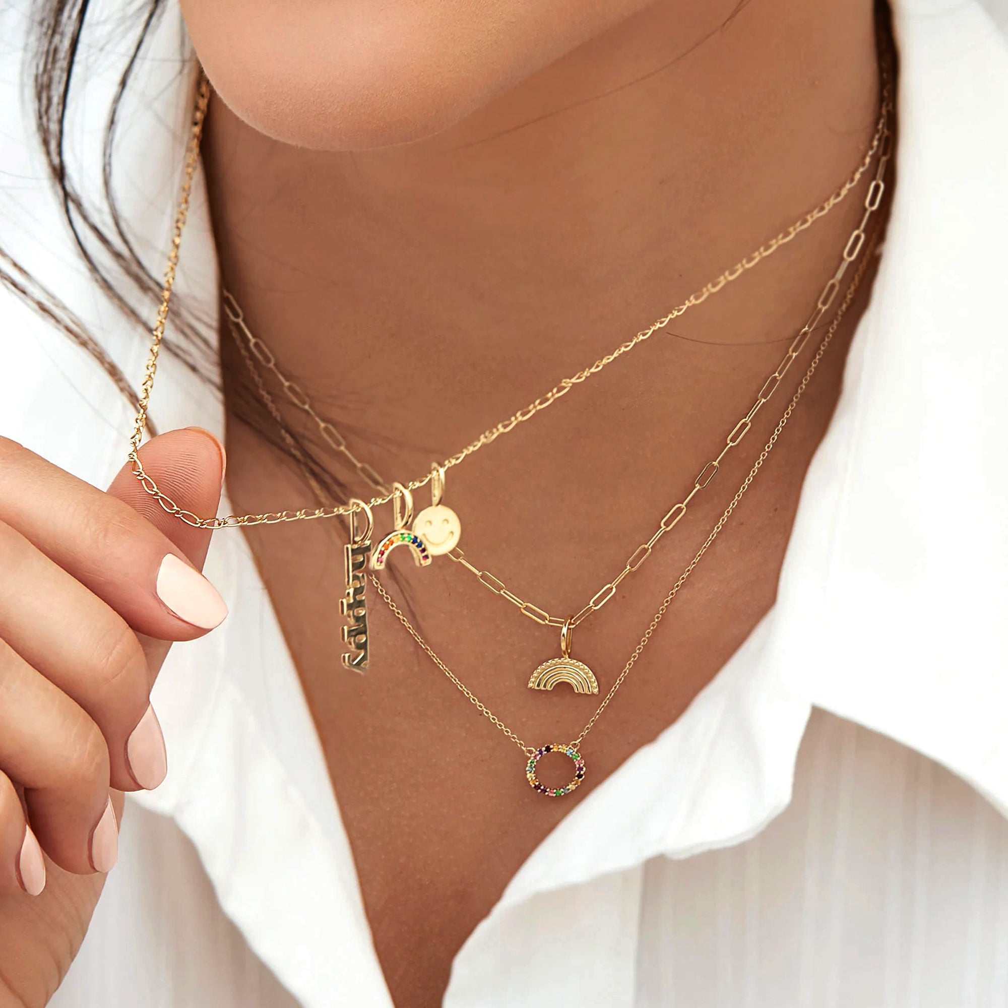 14K Gold Rainbow Charm Pendant – Real Solid Gold Multicolor Gemstone Jewelry