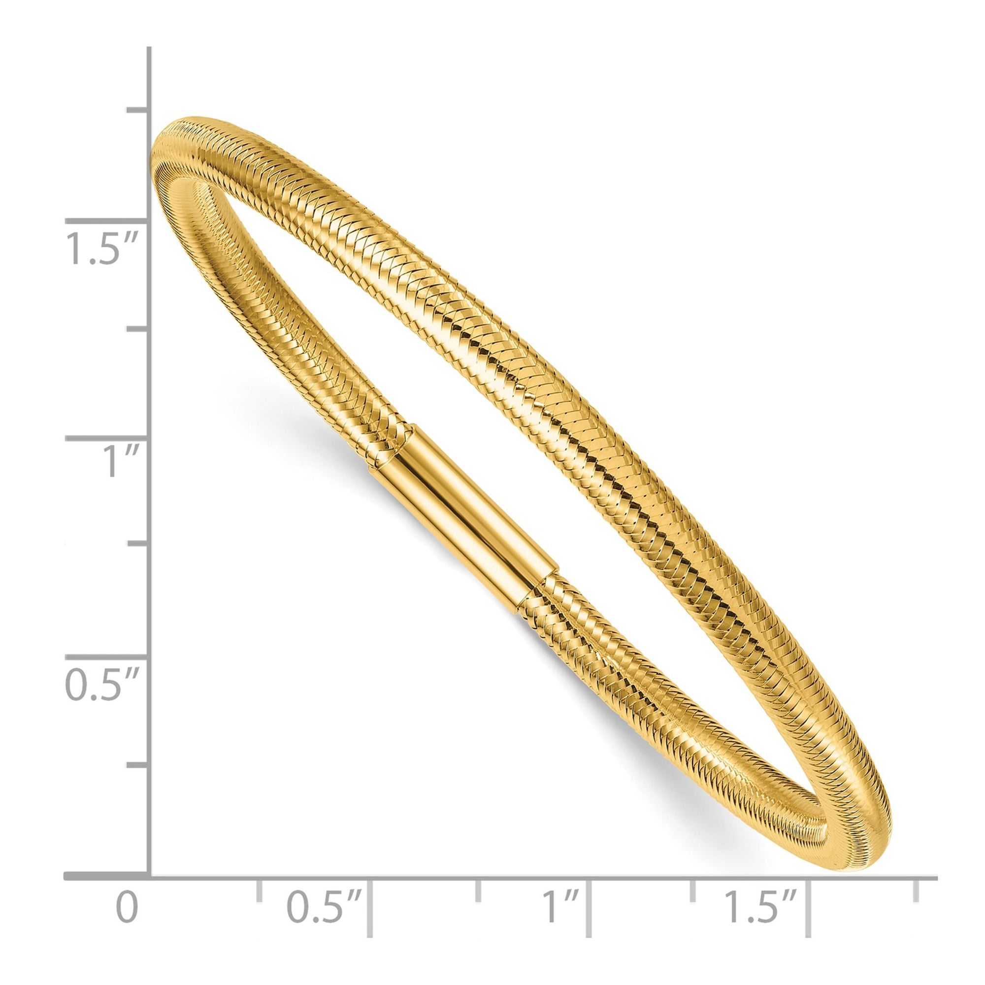Experience effortless elegance with this luxury Italian gold bangle designed with a flexible stretch fit for all-day comfort. Crafted in solid 14K yellow gold, its sleek high-polish finish and woven design reflect light beautifully, creating a sophisticated yet versatile piece.