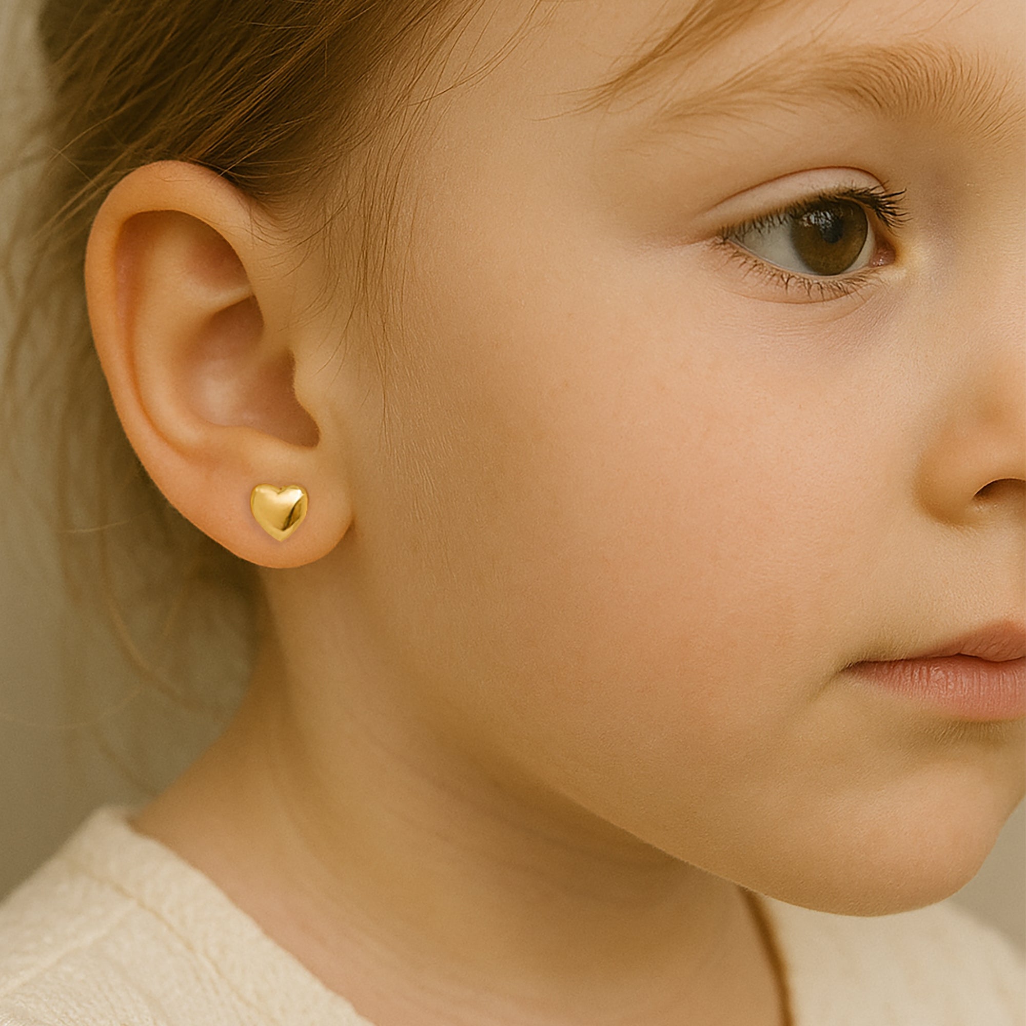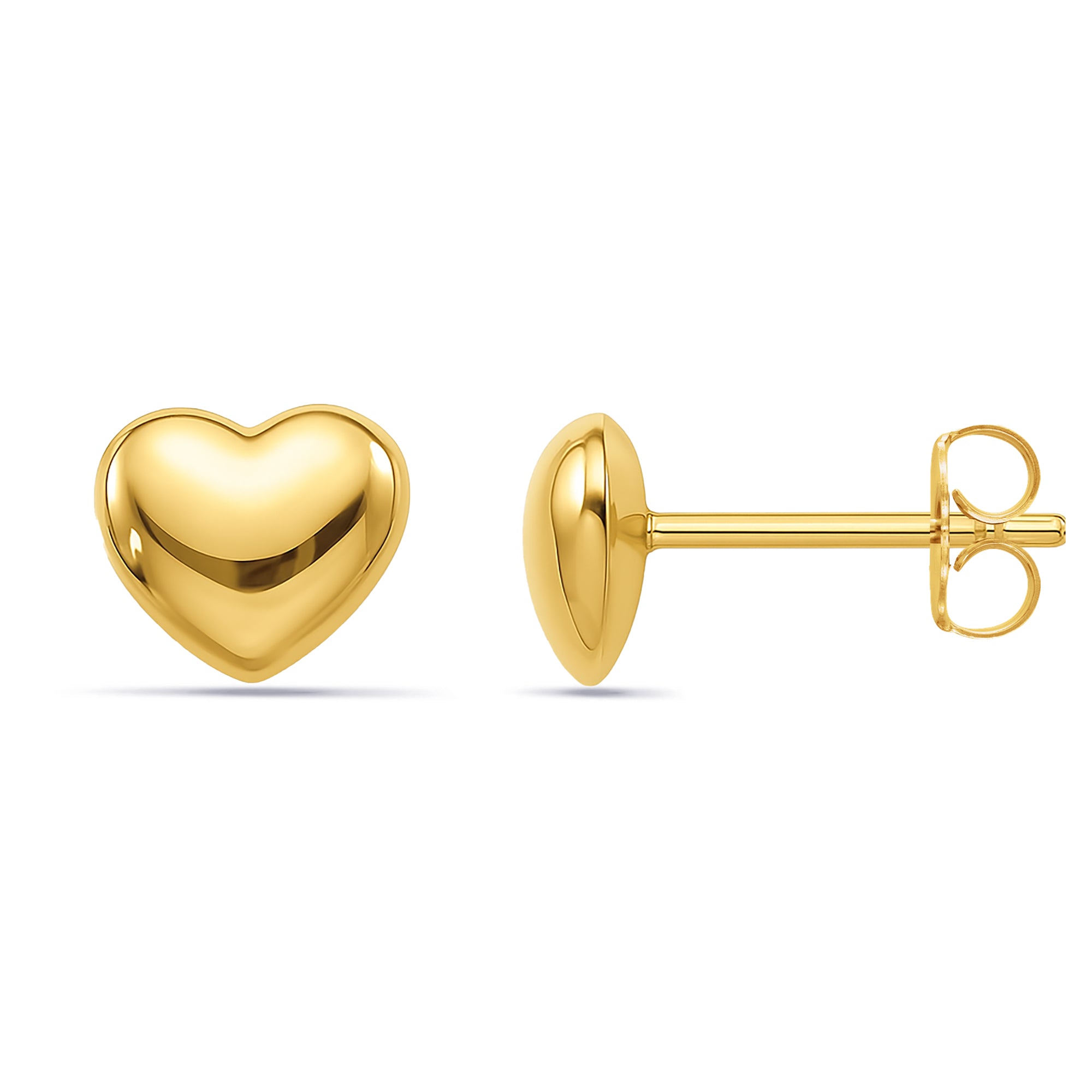 14K Gold Puffy Heart Stud Earrings 6mm | Solid Gold Dainty Studs Gift