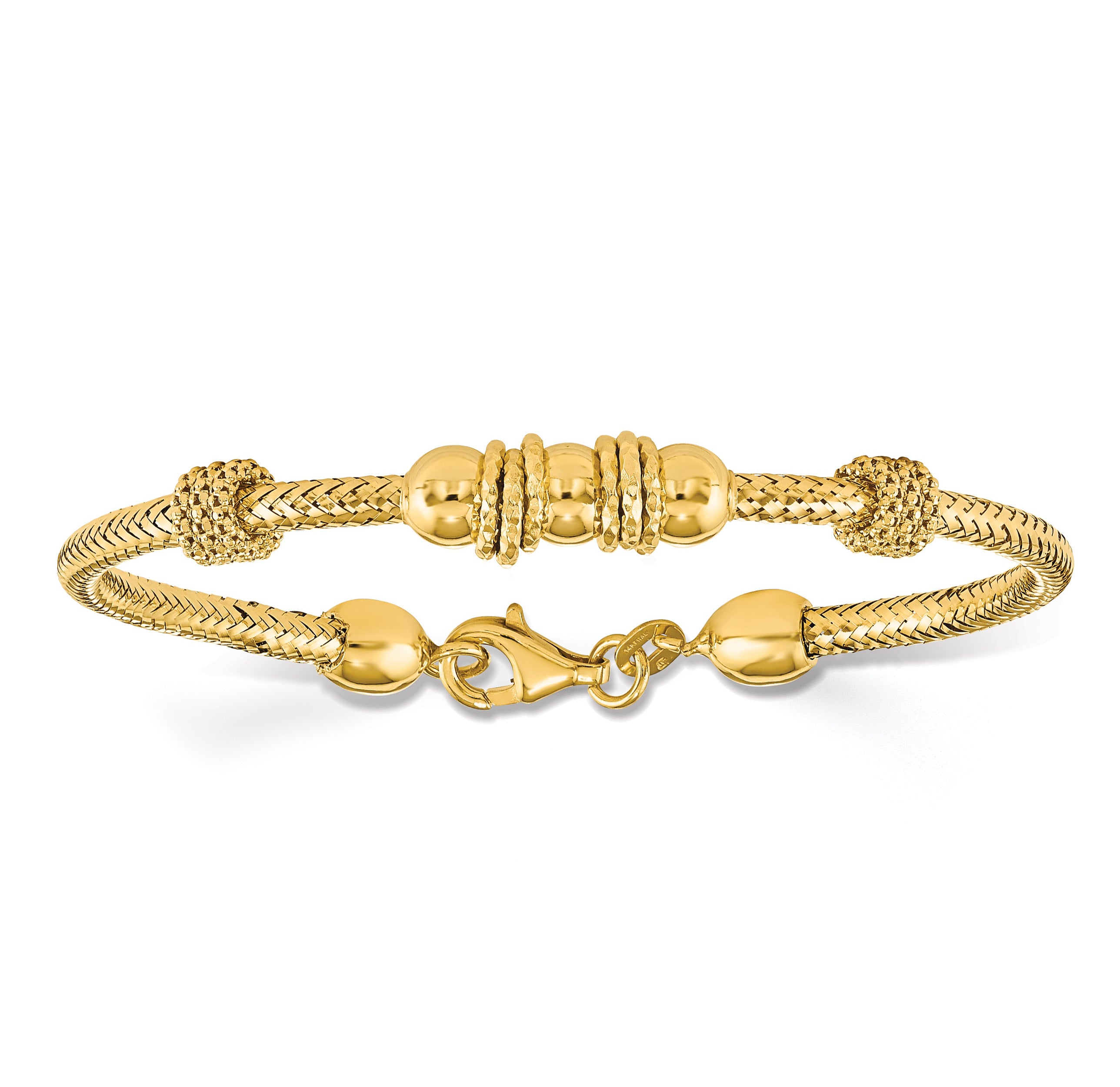 Elevate your jewelry collection with this 14K Solid Gold Basket Weave Mesh Bracelet, accented with polished beads and textured rings. The intricate basket weave design offers strength and shimmer, while the bead details add timeless elegance.