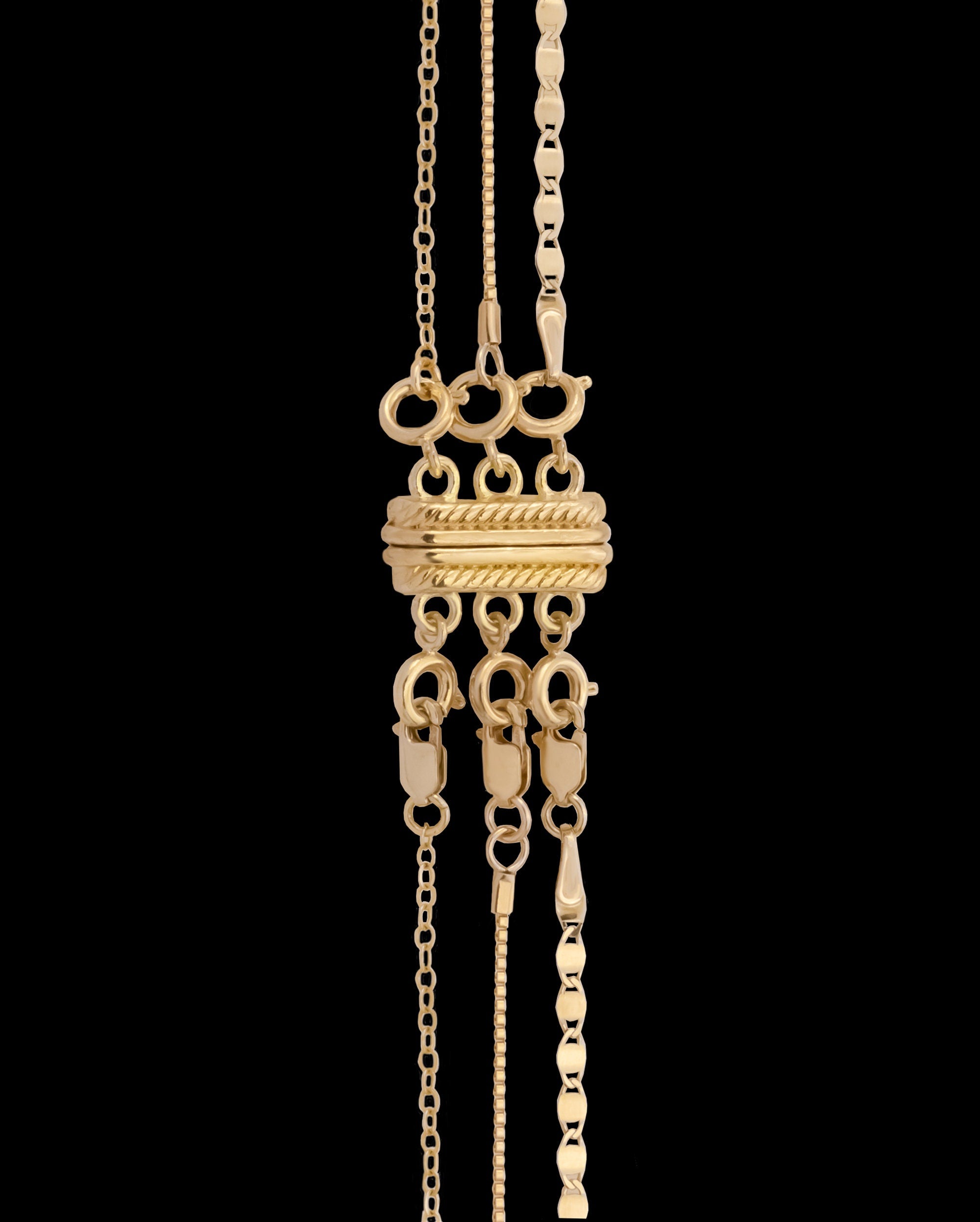 This magical clasp will keep your layered necklaces from tangling. You will attach your necklaces to each side of the clasp and it will become one multi-strand necklace. No more tangled necklaces! You can create your own layered necklaces and mix and match them as you like.