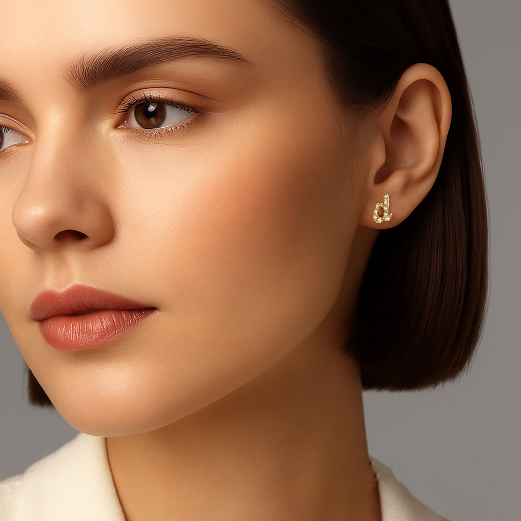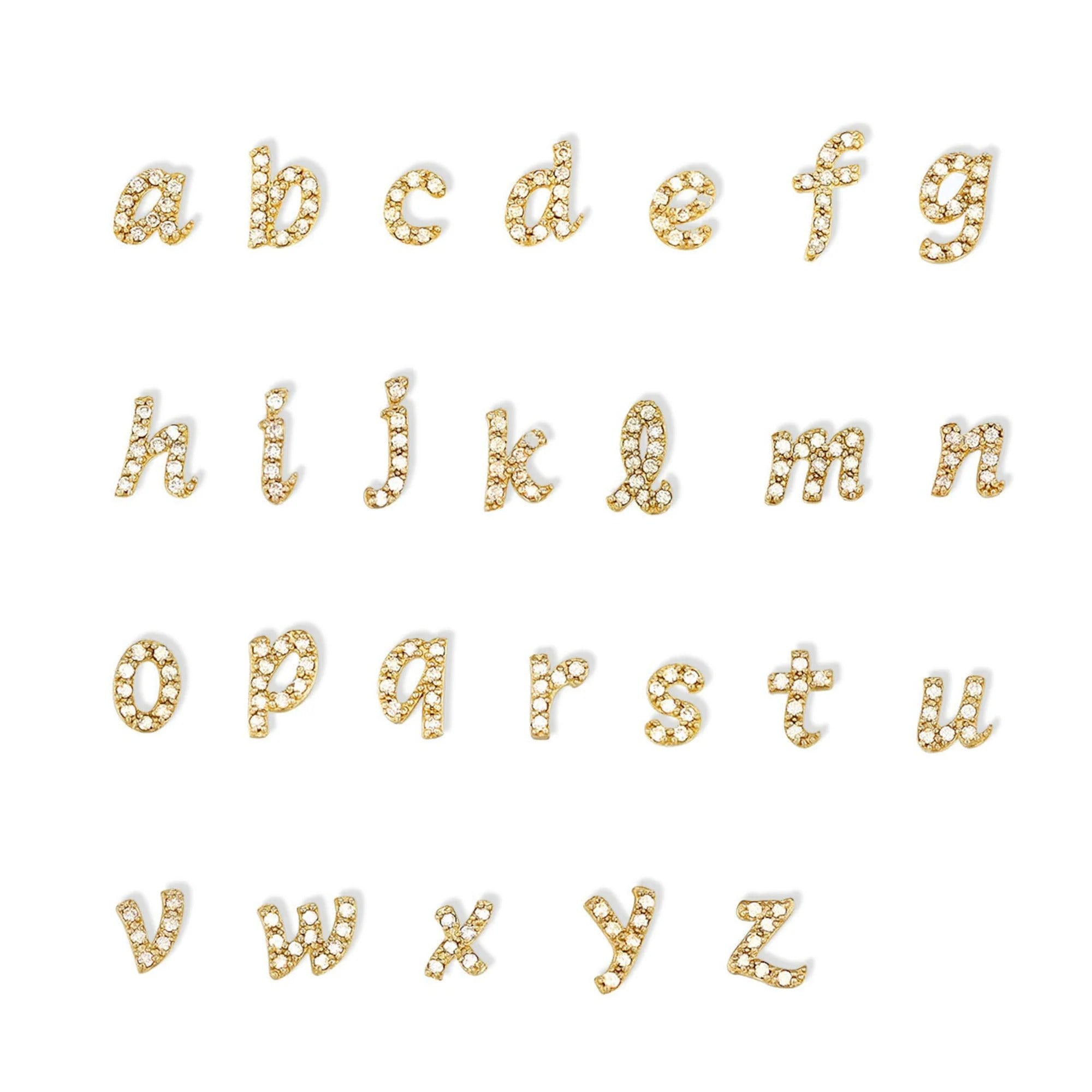 14K Gold Cursive Initial Diamond Stud Earrings Personalized Letter Jewelry