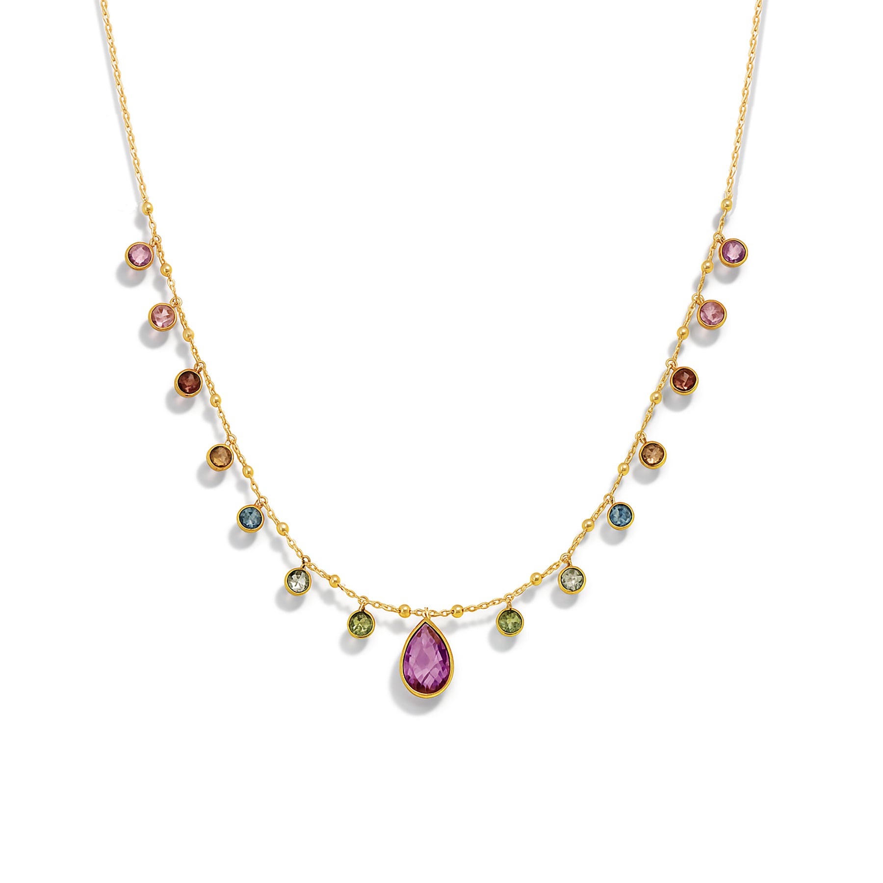Add a touch of luxury and color to your collection with this 14K solid gold multicolor gemstone necklace, handcrafted in Italy.