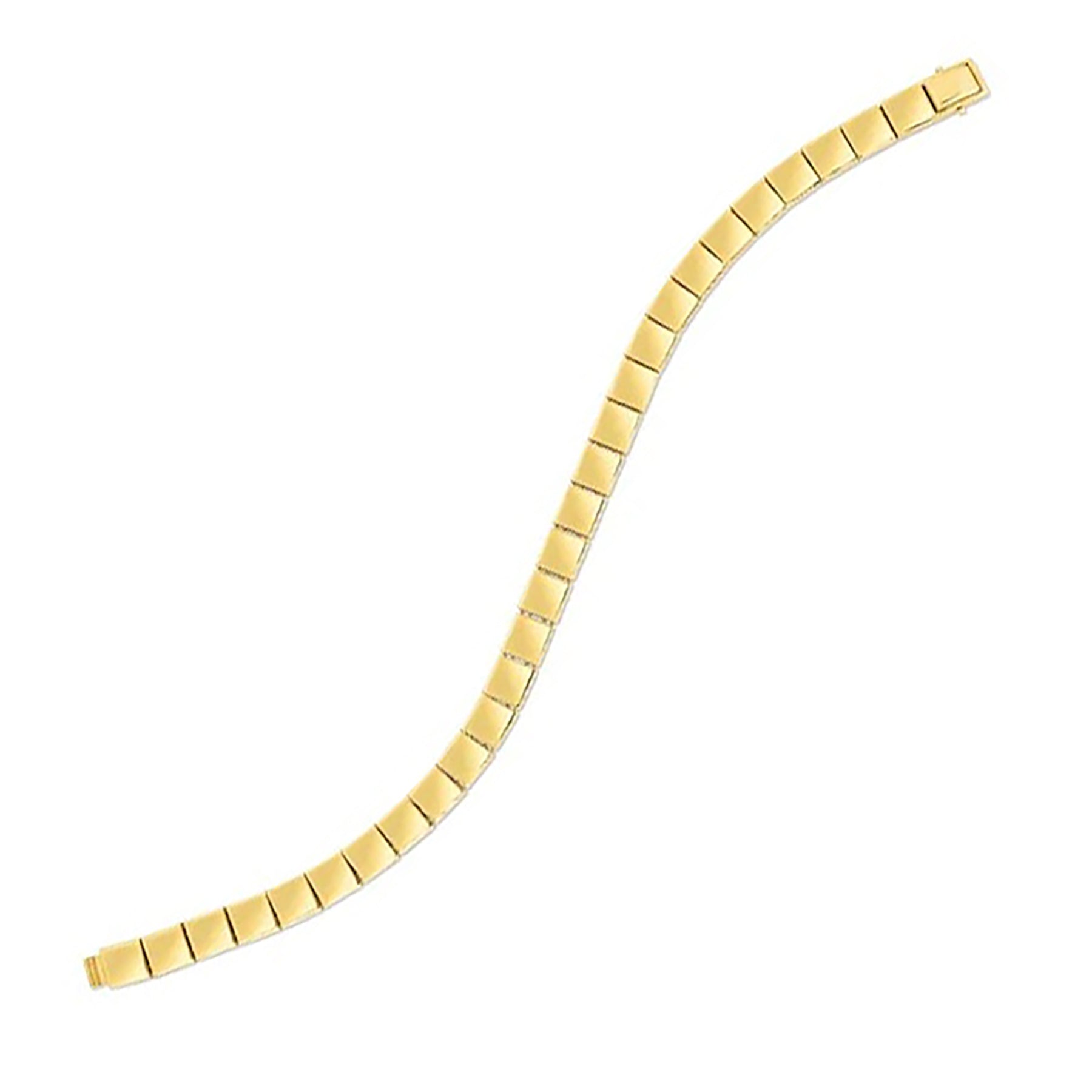 Indulge in modern sophistication with our 14K Gold Square Cube Link Chain Necklace. Crafted with precision and elegance, this necklace features distinctive square cube links that effortlessly blend contemporary design with timeless allure. Made from genuine 14K gold, it radiates opulence and enduring beauty. Whether worn solo for a minimalist statement or paired with other pieces for a stacked effect, this necklace is versatile for any occasion. The secure closure ensures a comfortable fit, allowing you to showcase your unique style with confidence.