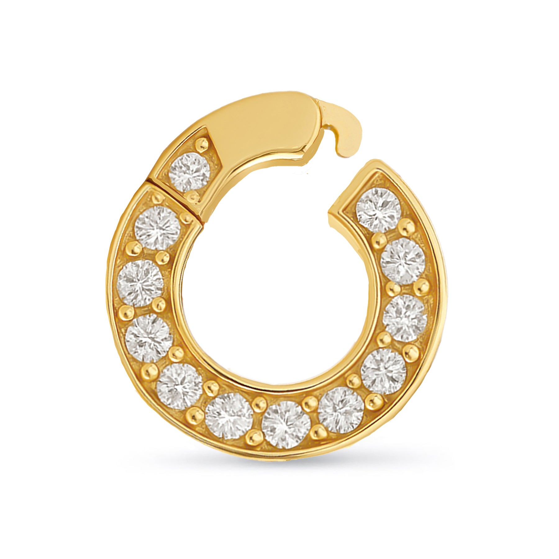 Introducing our exquisite 14K Gold Diamond Accented Circular Charm Enhancer – a touch of elegance to enhance the beauty of your favorite charms. Meticulously crafted with premium 14K gold, this tiny charm clip not only adds a hint of luxury but also serves as the perfect canvas for your unique style.