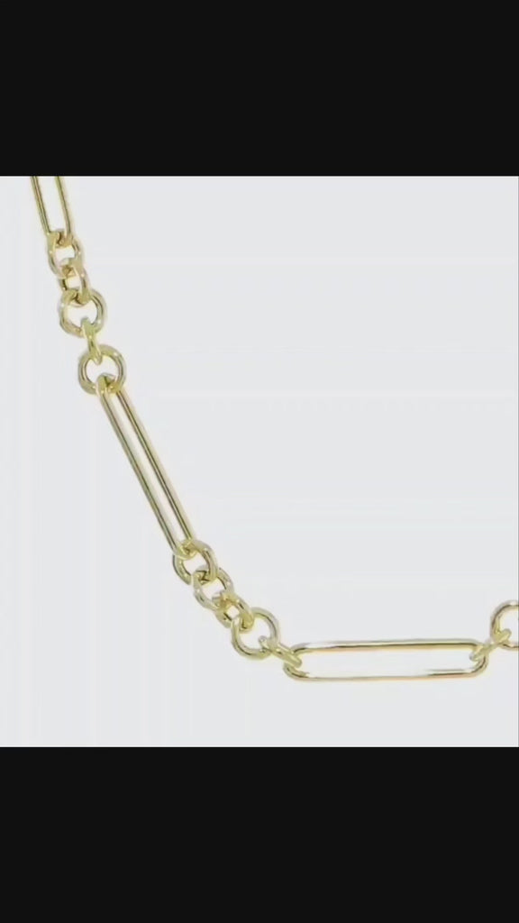 14K Gold Paperclip & Rolo Mixed Linked Chain Necklace Made in Italy