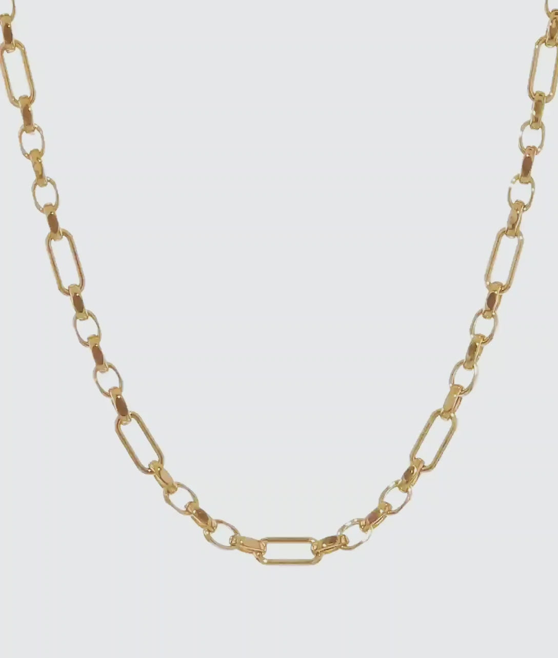 Elevate your look with our 14K Solid Gold Paperclip & Rolo Mixed Link Chain Necklace, masterfully made in Italy. This contemporary design combines sleek paperclip links with classic rolo links, creating a luxurious texture and balance that complements any outfit—from casual to couture.