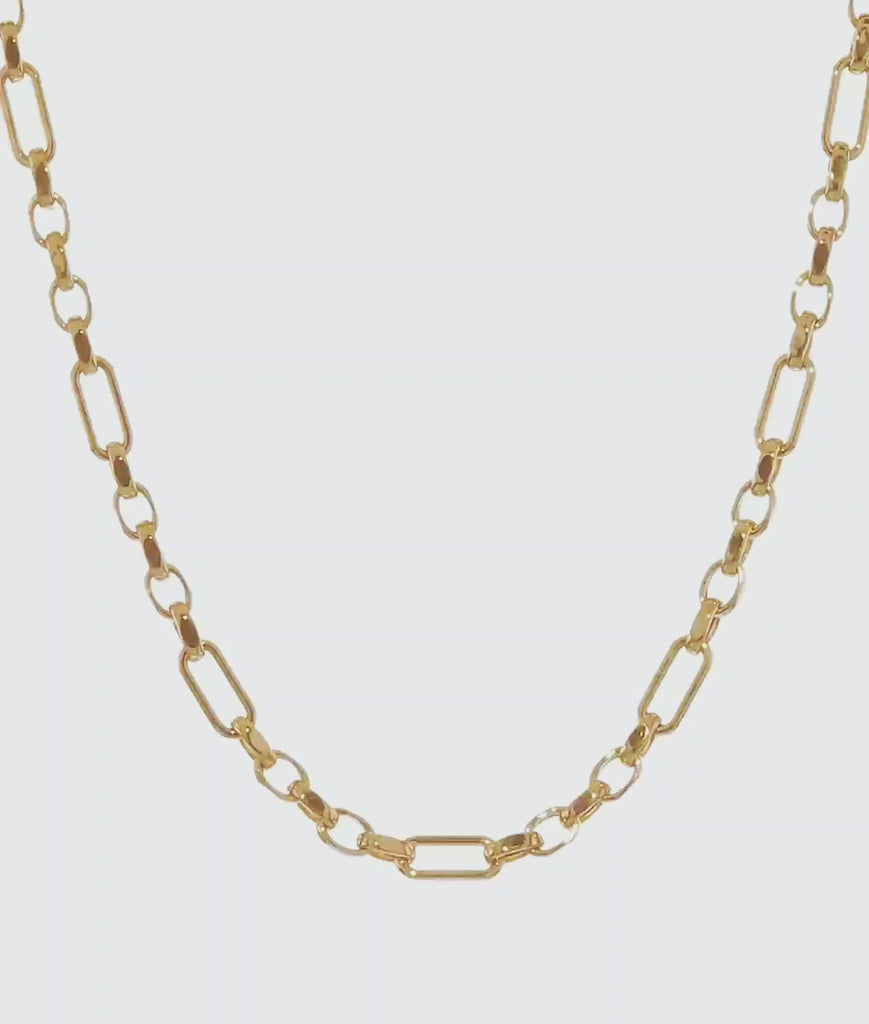 14K Solid Gold Paperclip & Rolo Mixed Link Chain Necklace – Made in Italy