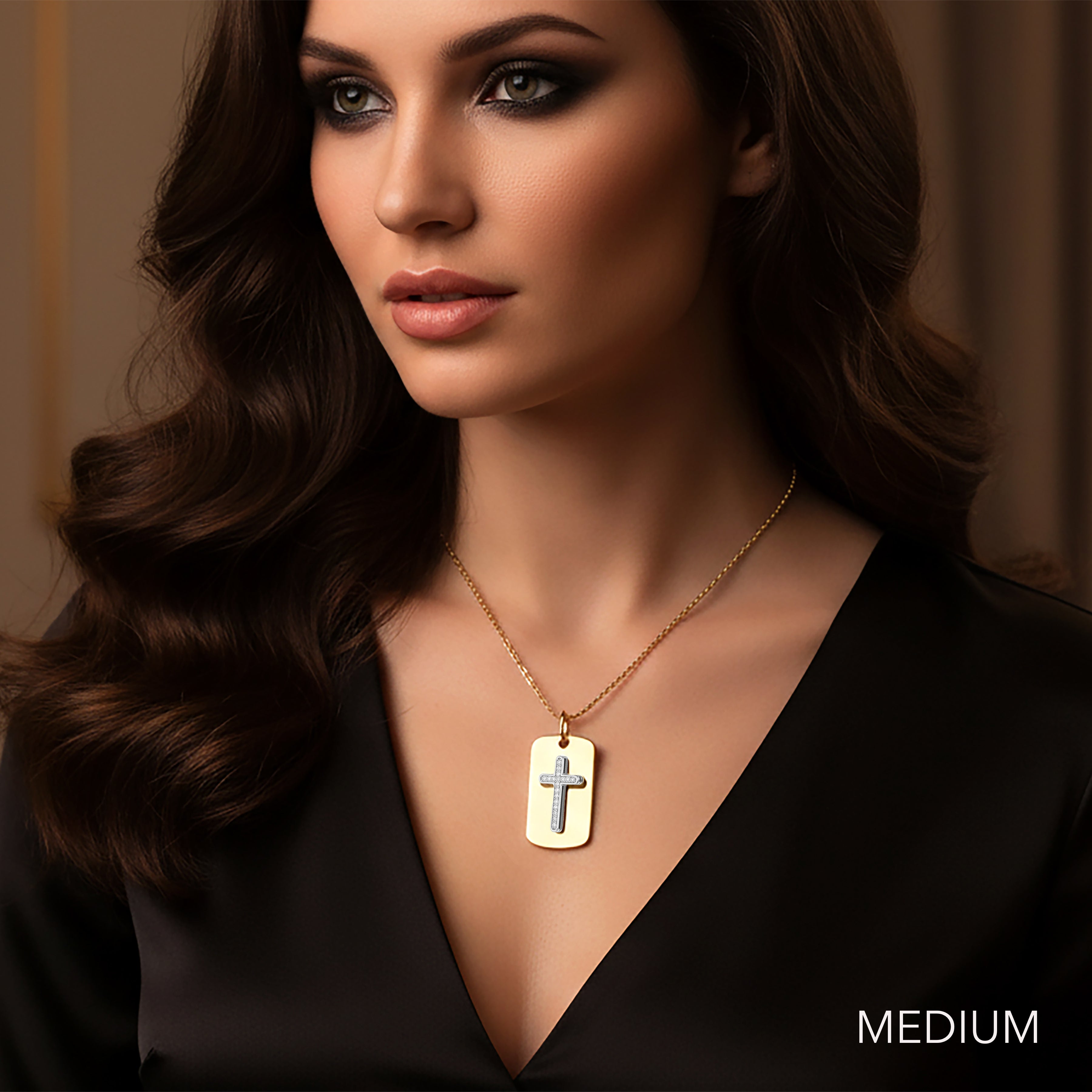 Honor faith and craftsmanship with our 14K Solid Gold Diamond Dog Tag Cross Pendant, designed in a sleek dog-tag silhouette and adorned with a stunning raised diamond cross. Crafted from 100% solid 14K yellow gold, this pendant features a contrasting white-gold cross pavé-set with natural, brilliant-cut diamonds for exceptional sparkle and dimension.