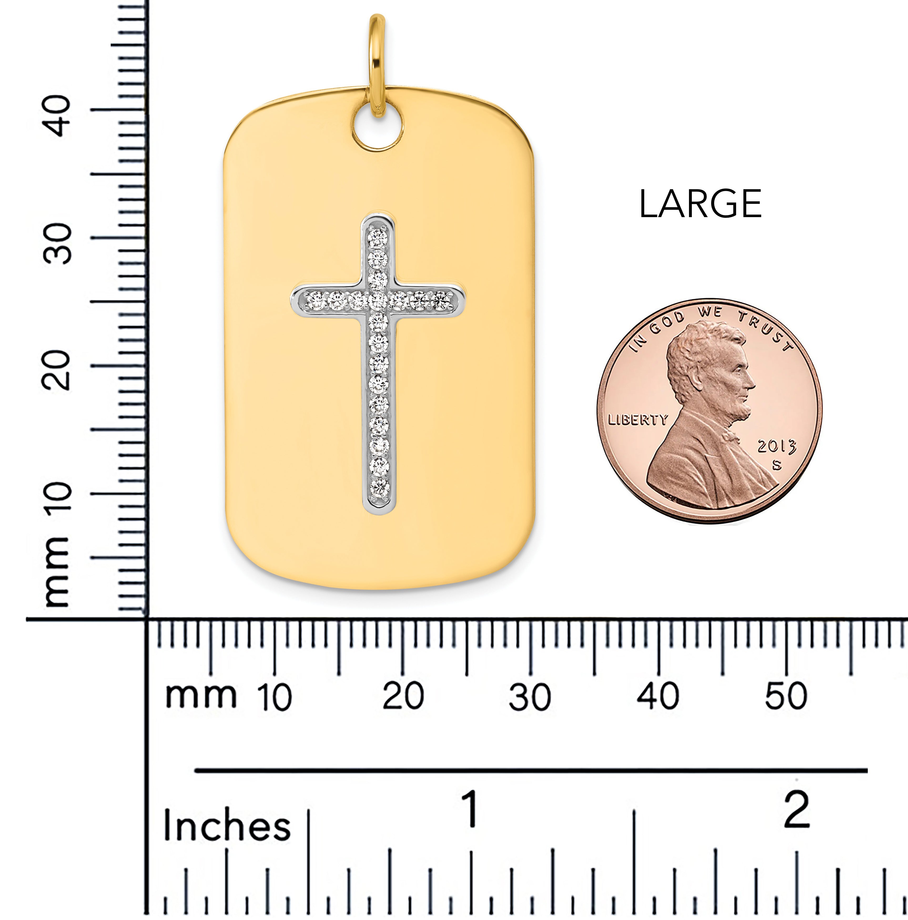 14K Solid Gold Diamond Dog Tag Cross Pendant