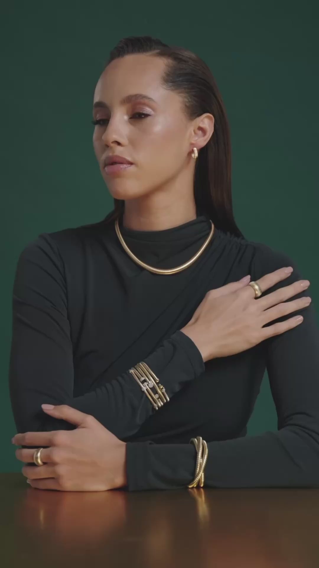 Polished to a radiant shine, this luxury gold coil necklace sits beautifully along the neckline, making it a striking standalone statement or a refined layering piece. A timeless essential, this graduated Italian gold cobra necklace transitions effortlessly from day to evening wear.