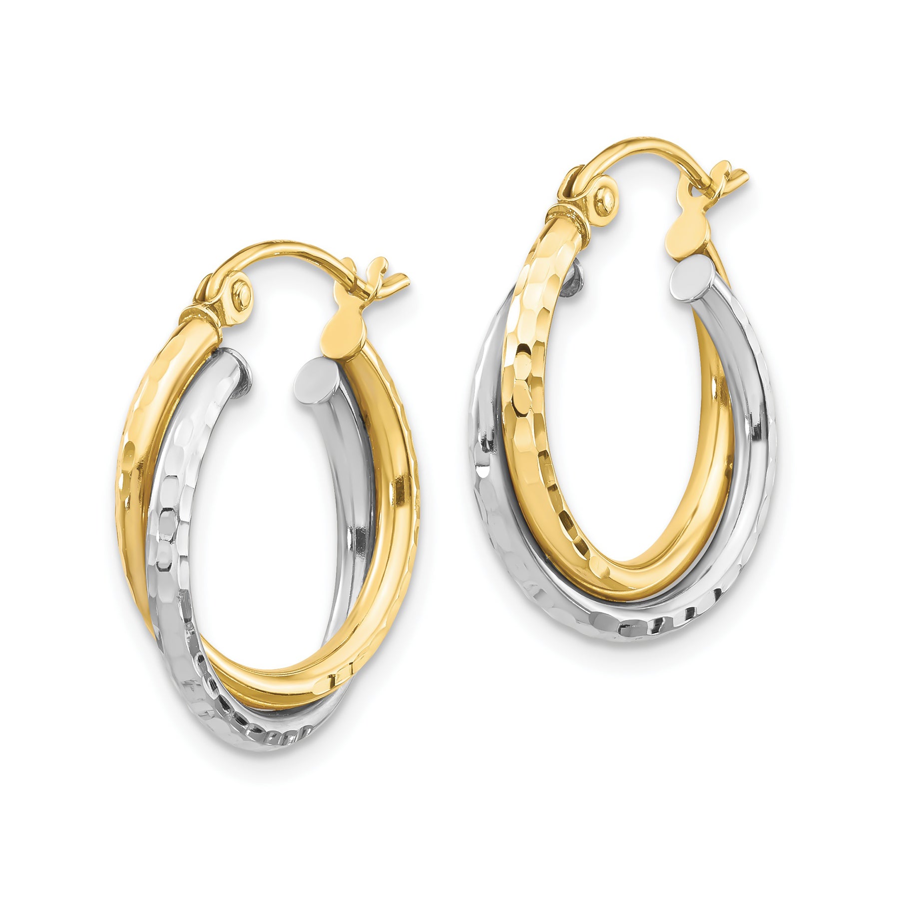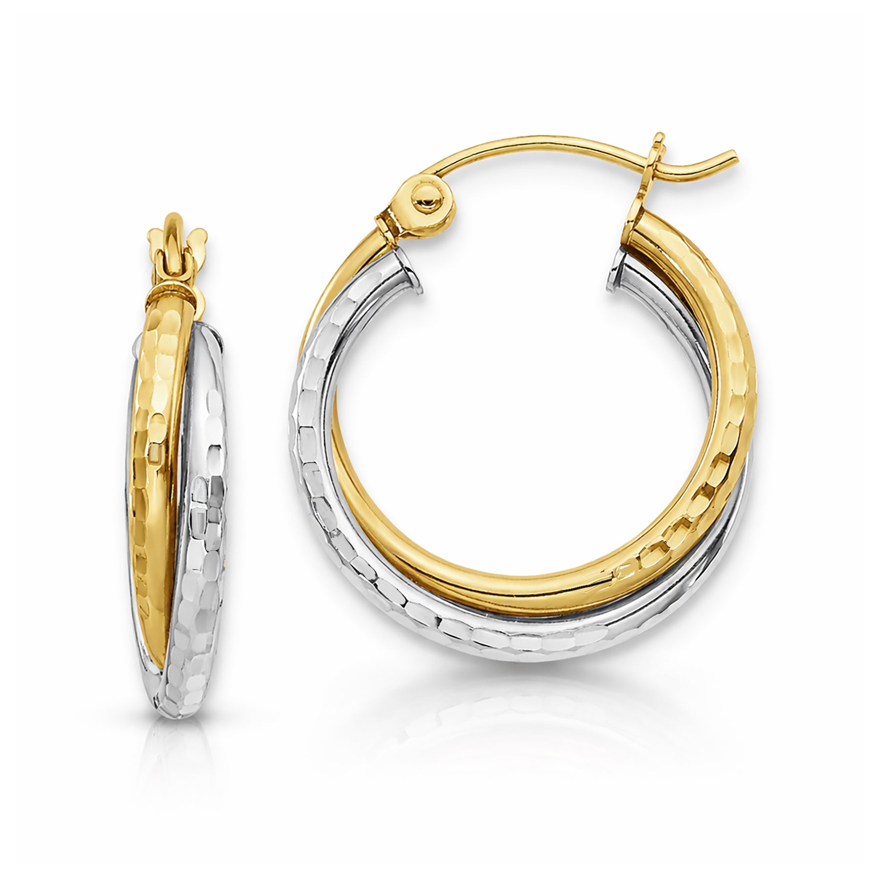10K Solid Gold Two-Tone Twisted Hammered Hoop Earrings for Women