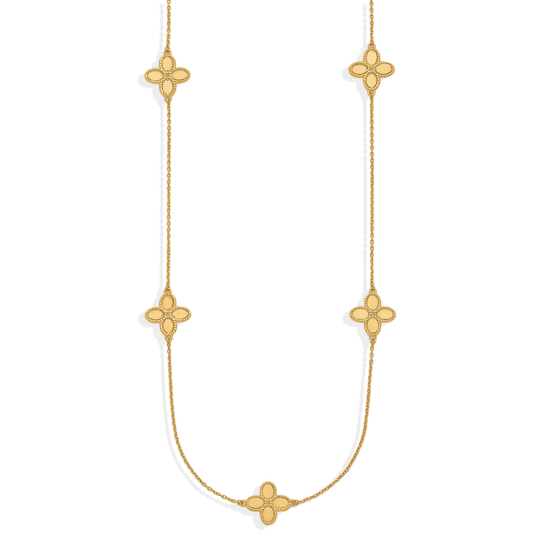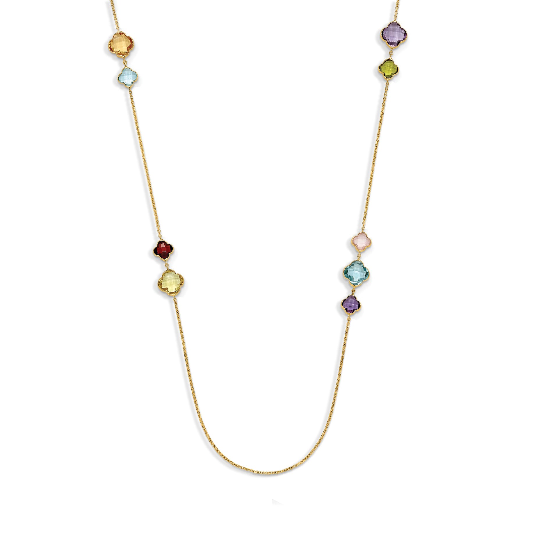 14K Gold Clover Station Long Necklace 30 inch – Multicolor Rainbow Necklace