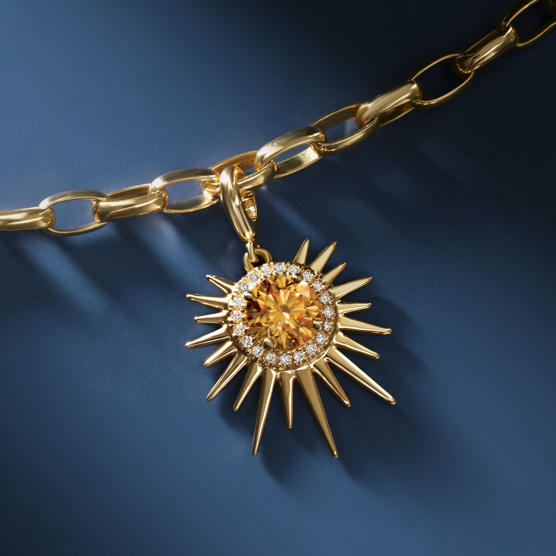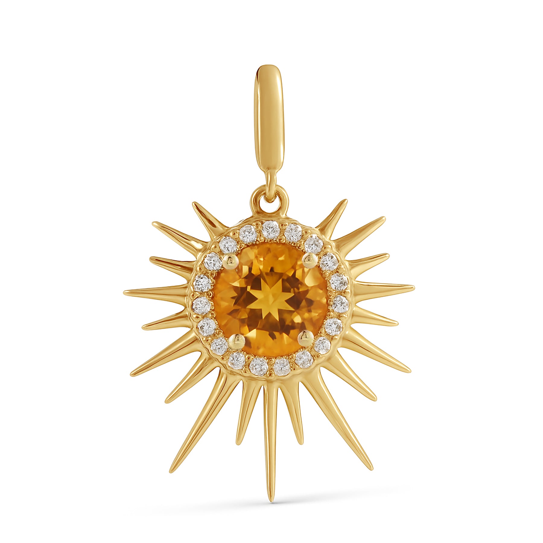 14K Solid Gold Removable Sun Charm Pendant with Diamond & Citrine