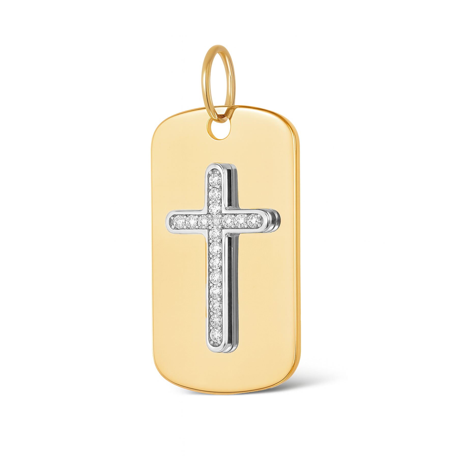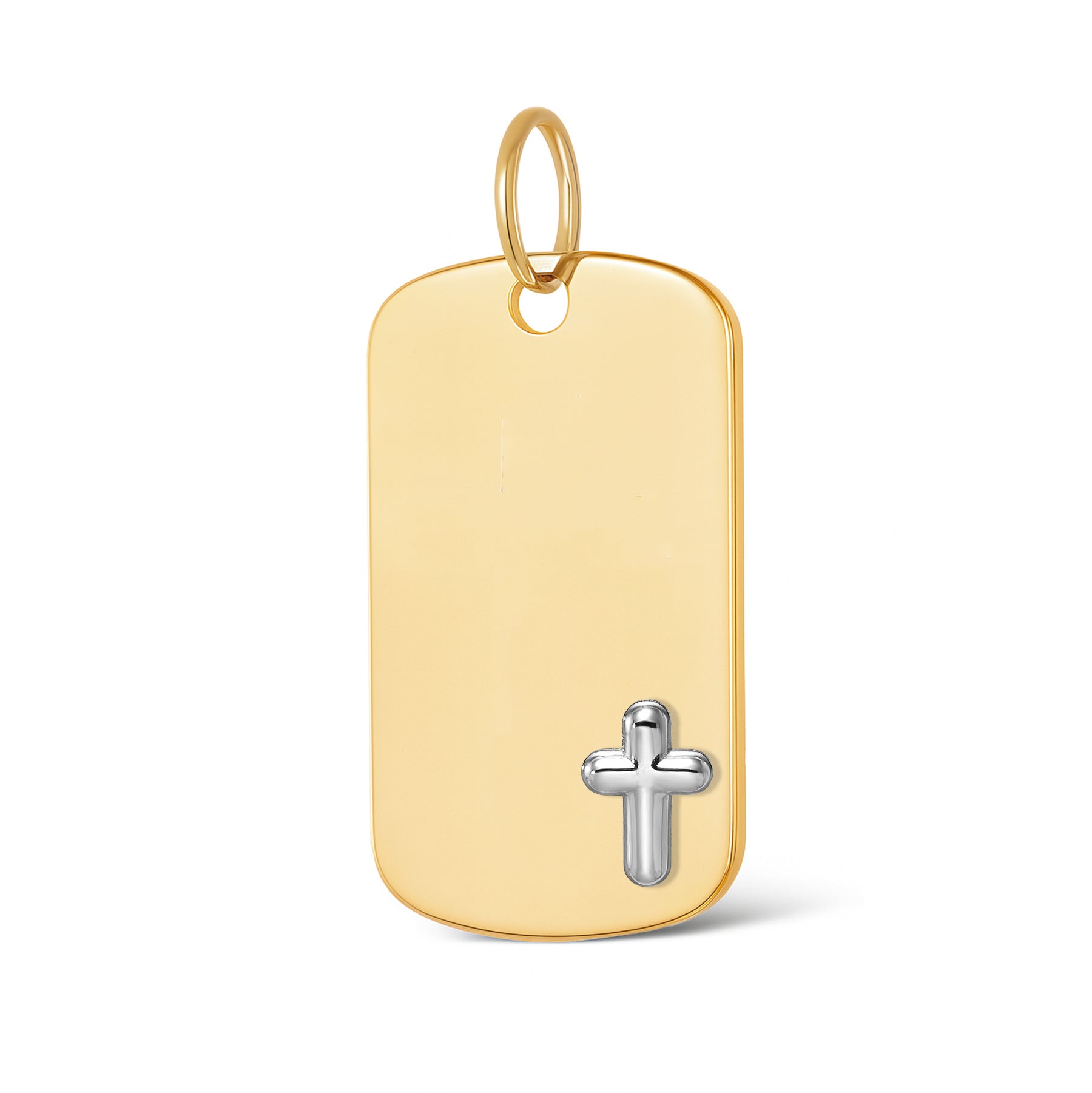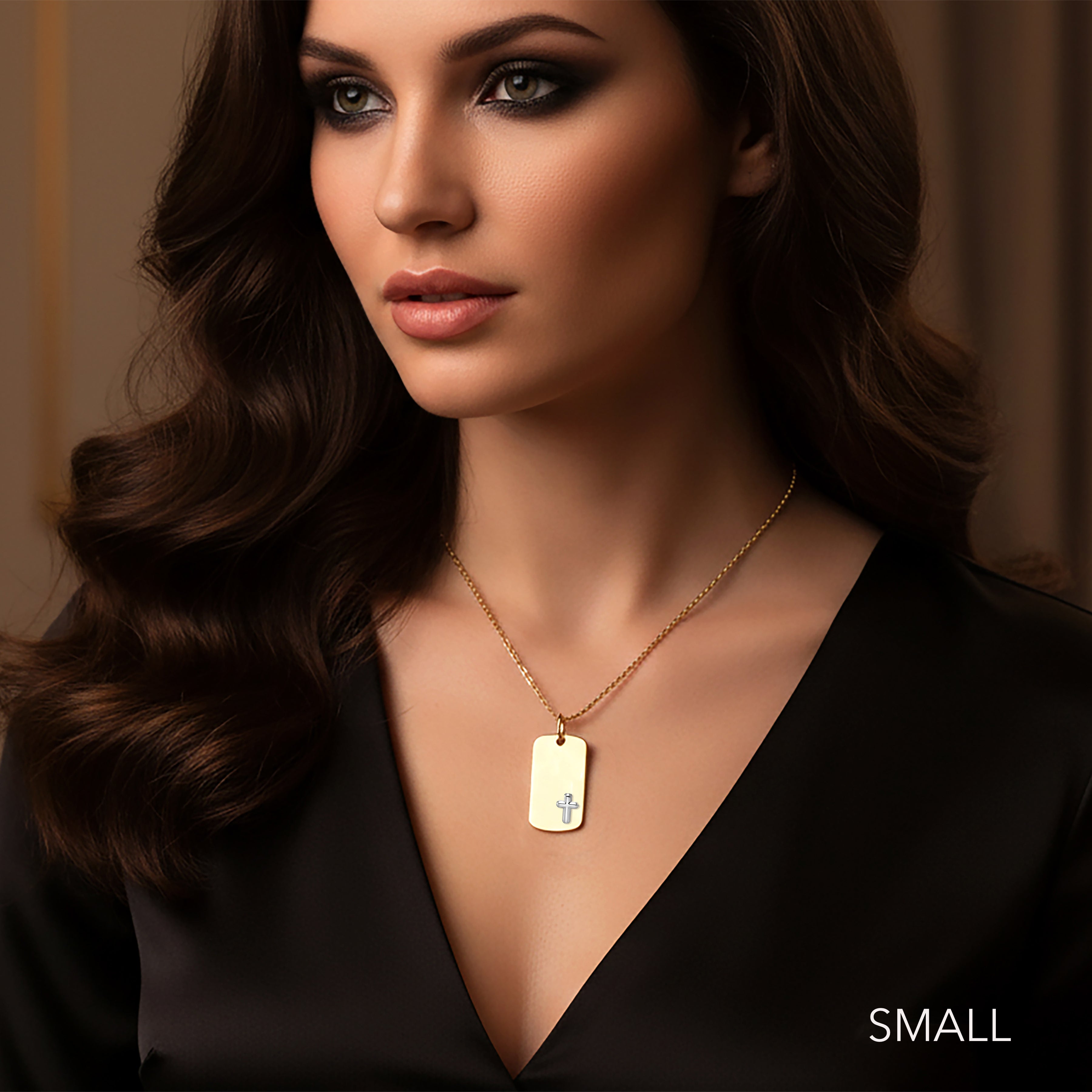 14K Solid Gold Diamond Dog Tag Cross Pendant