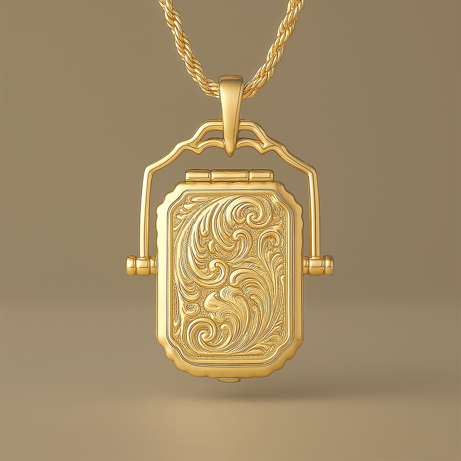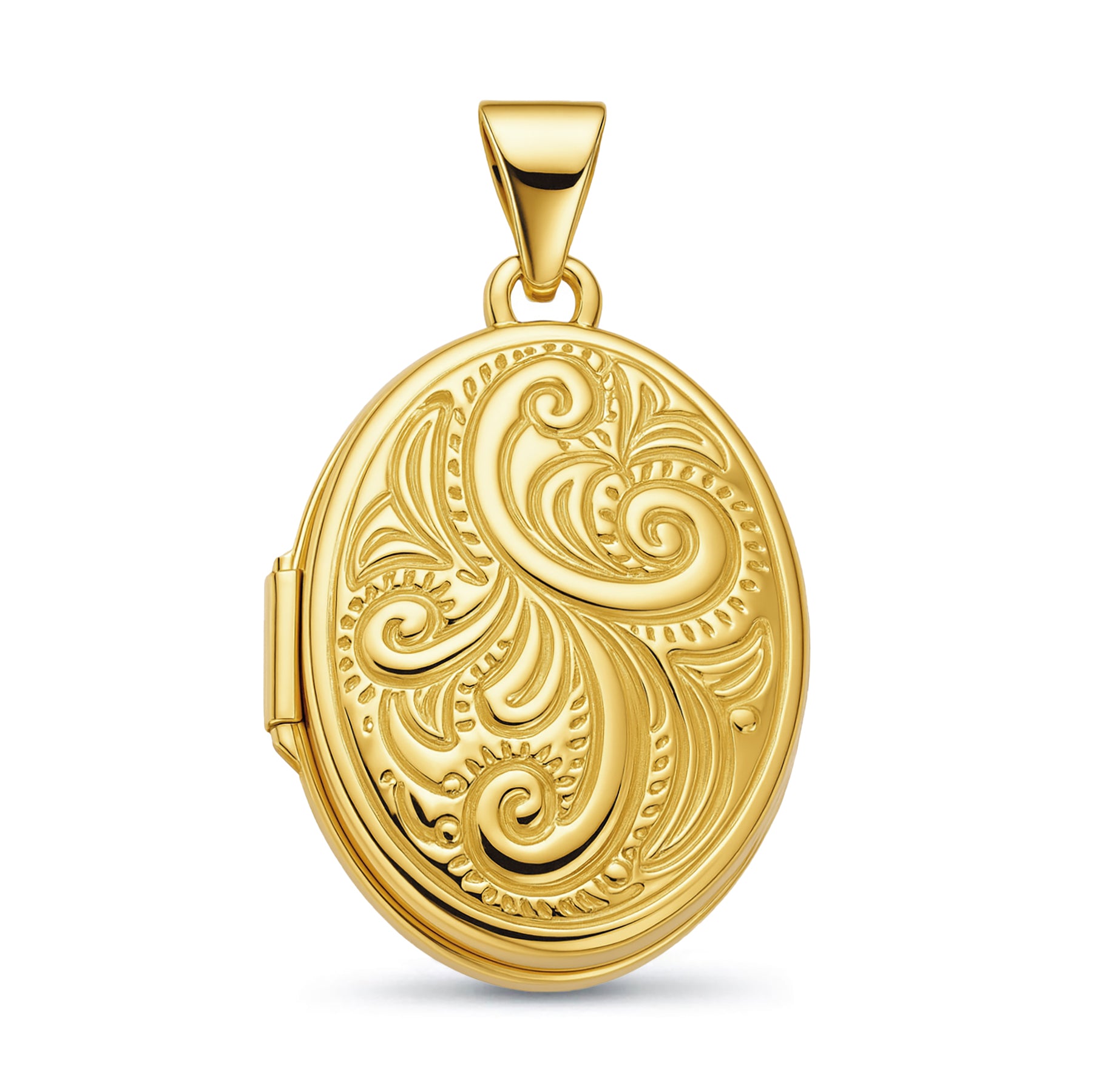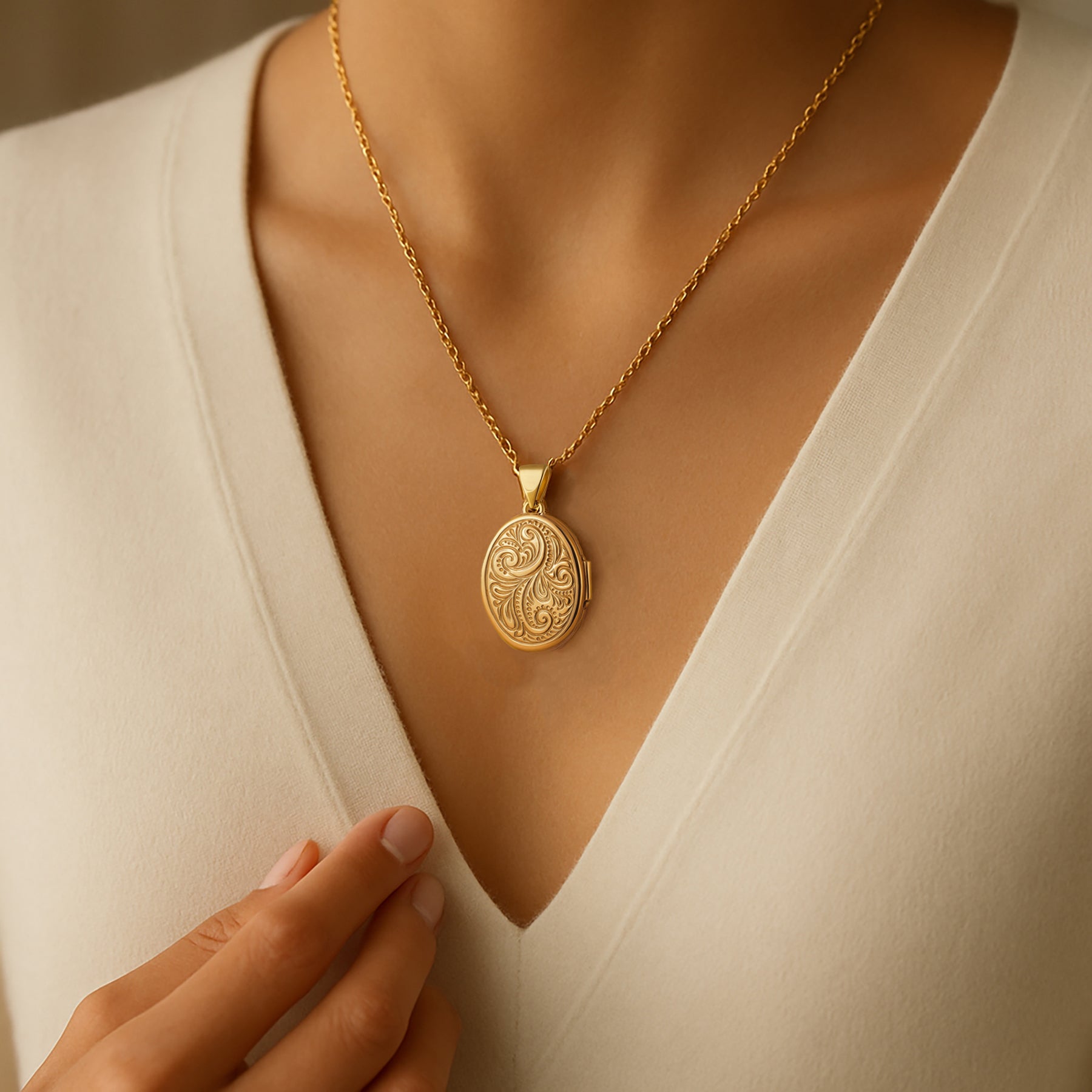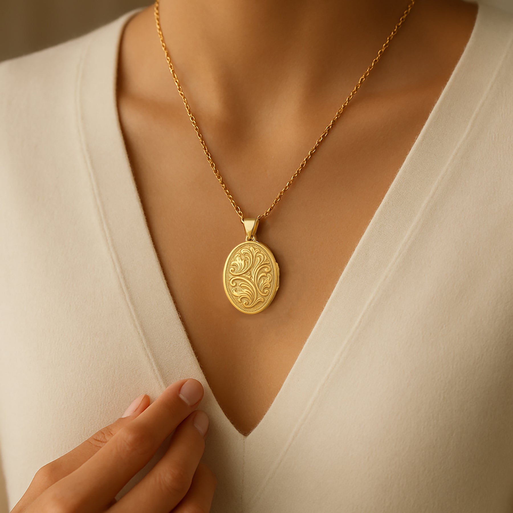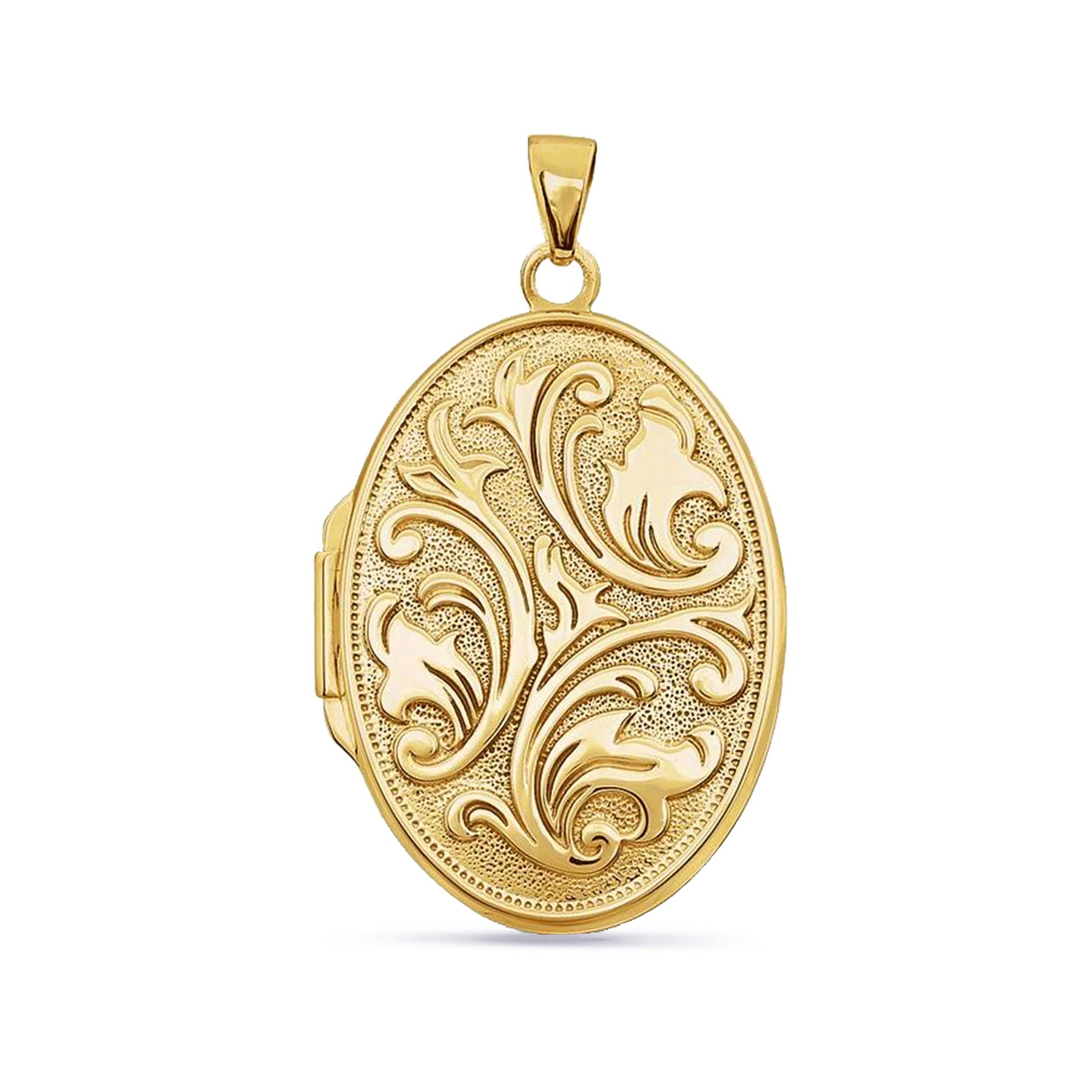 14K Gold Personalized Engraved Floral Antique Style Oval Locket