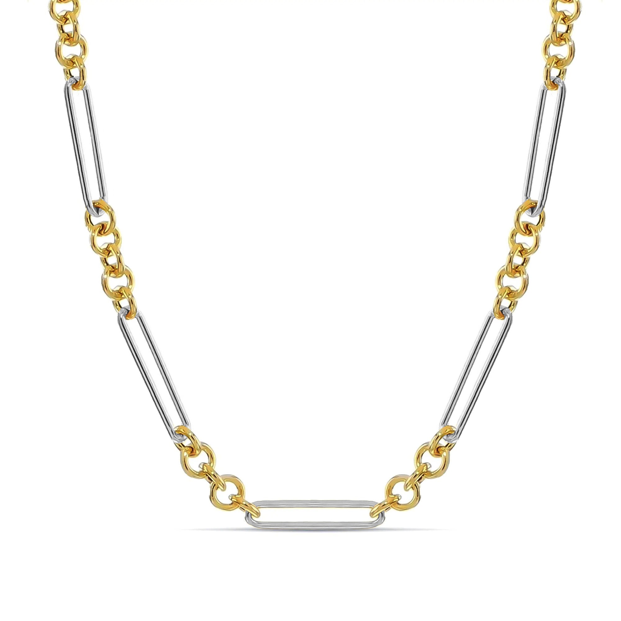 14K Gold Two-Tone Paperclip & Rolo Mixed Link Chain Necklace – Made in Italy