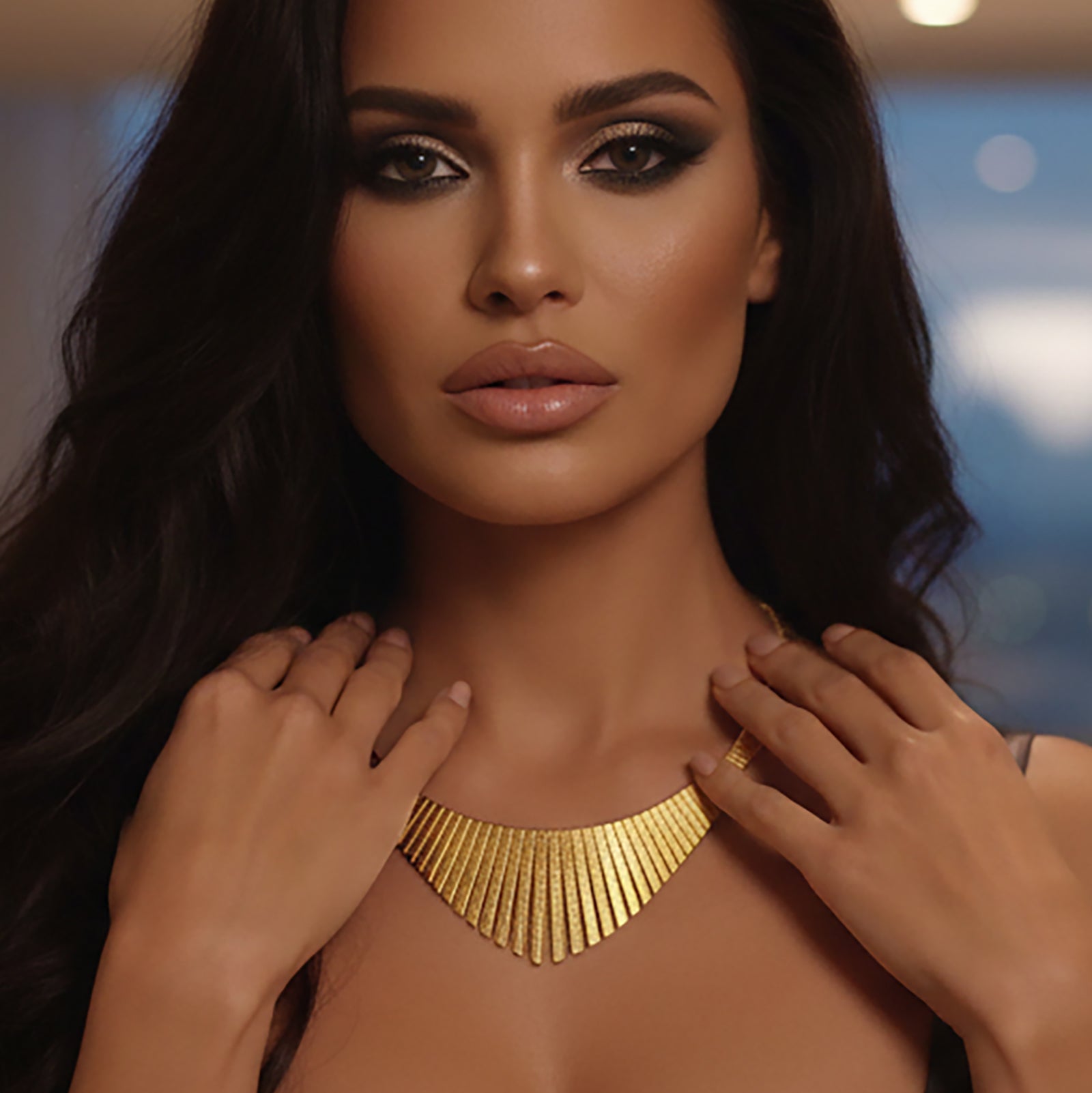 14K Gold Cleopatra Omega Necklace – Luxurious Italian Collar Choker