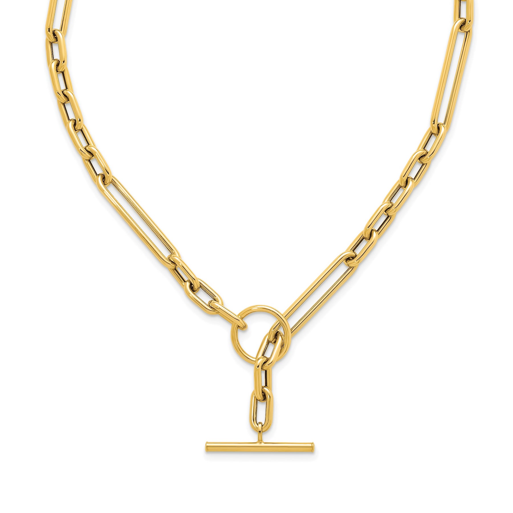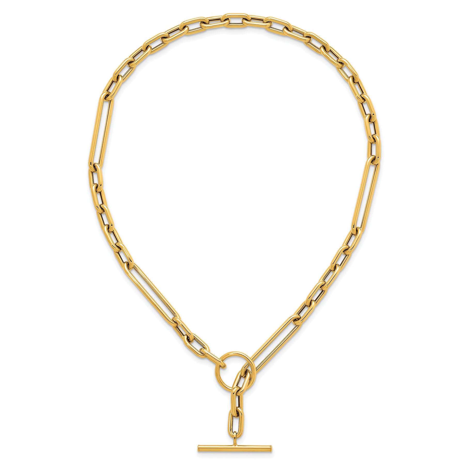 14K Gold Paperclip & Rolo Mixed Link Chain Toggle Necklace
