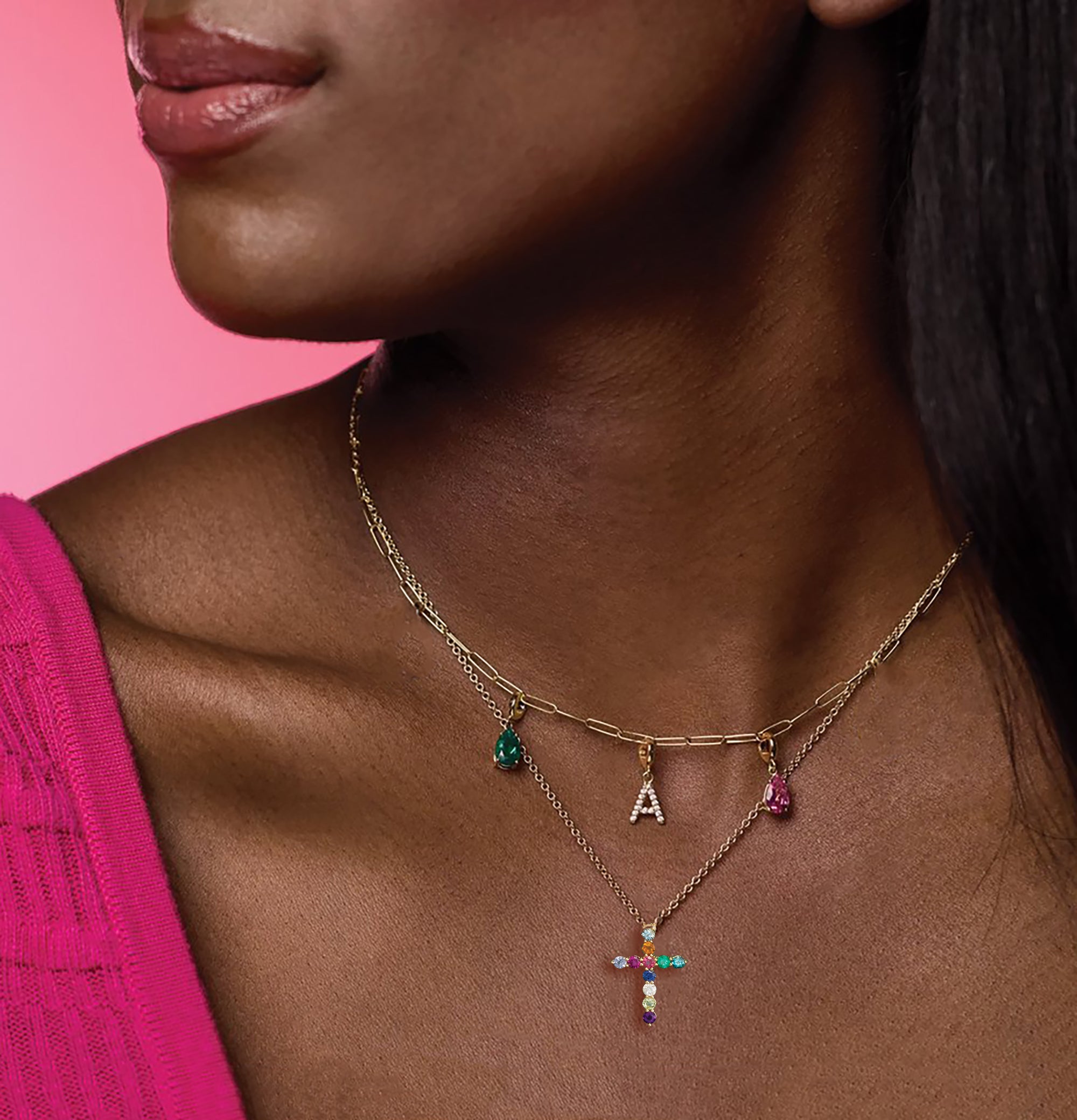14K Solid Gold Rainbow Cross Necklace