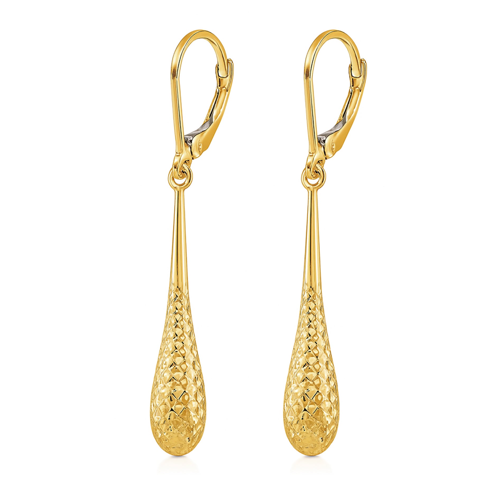 14K Solid Gold Diamond Cut Teardrop Dangle Earrings