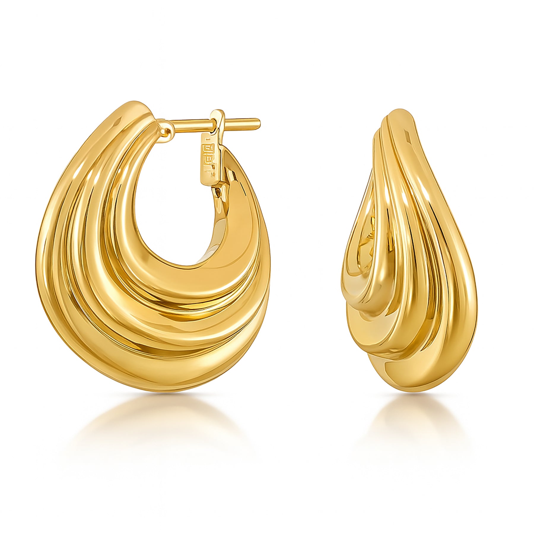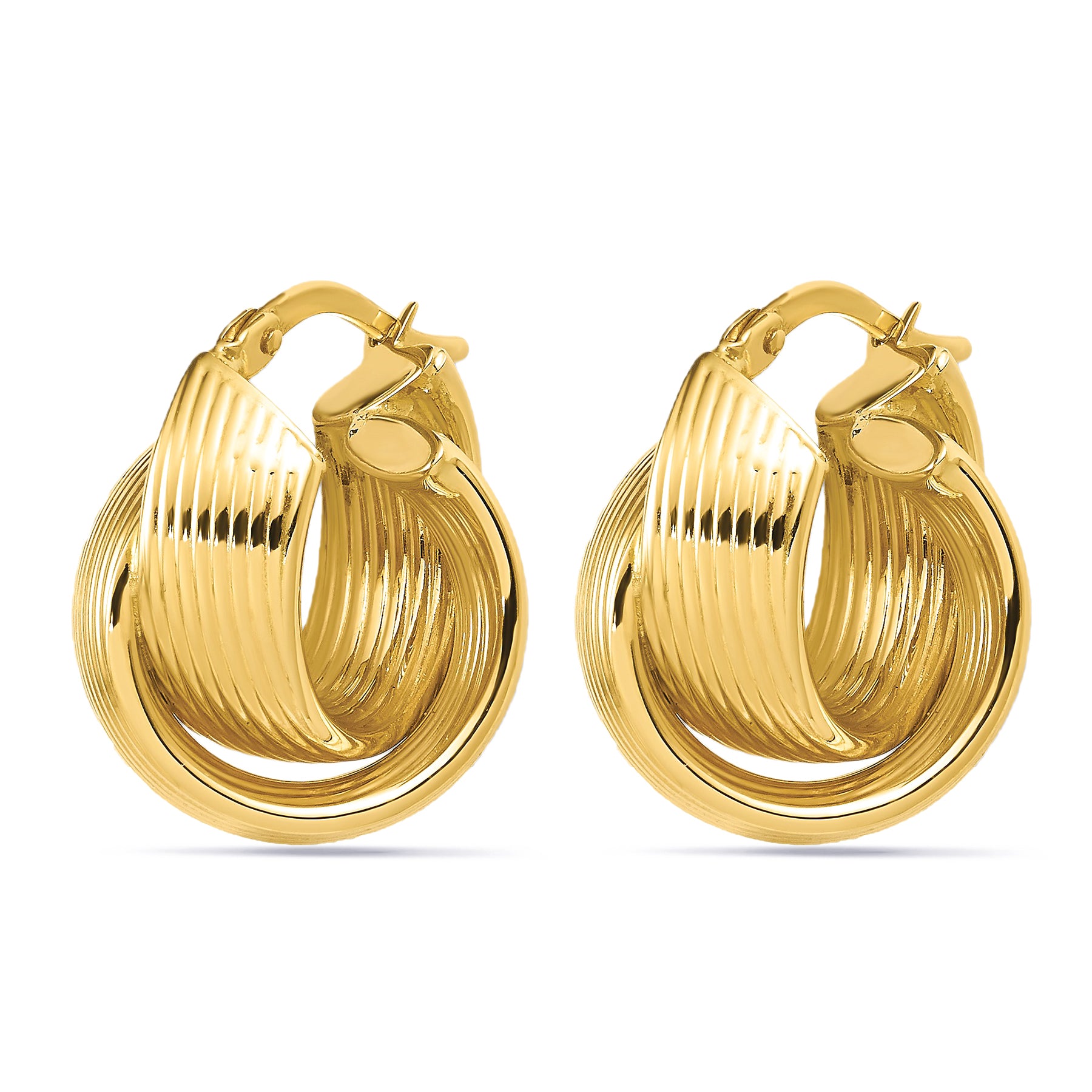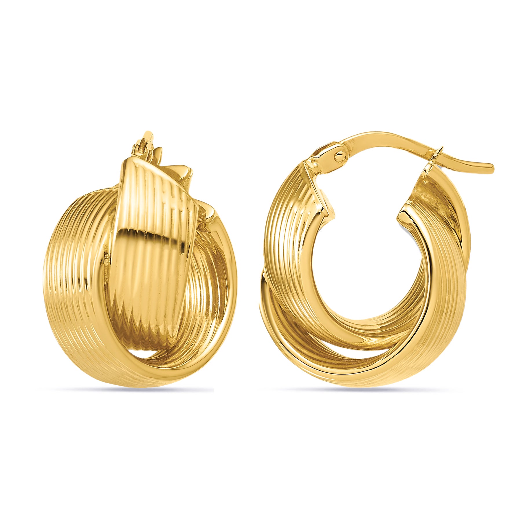 14K Solid Gold Twisted Grooved Modern Hoop Earrings