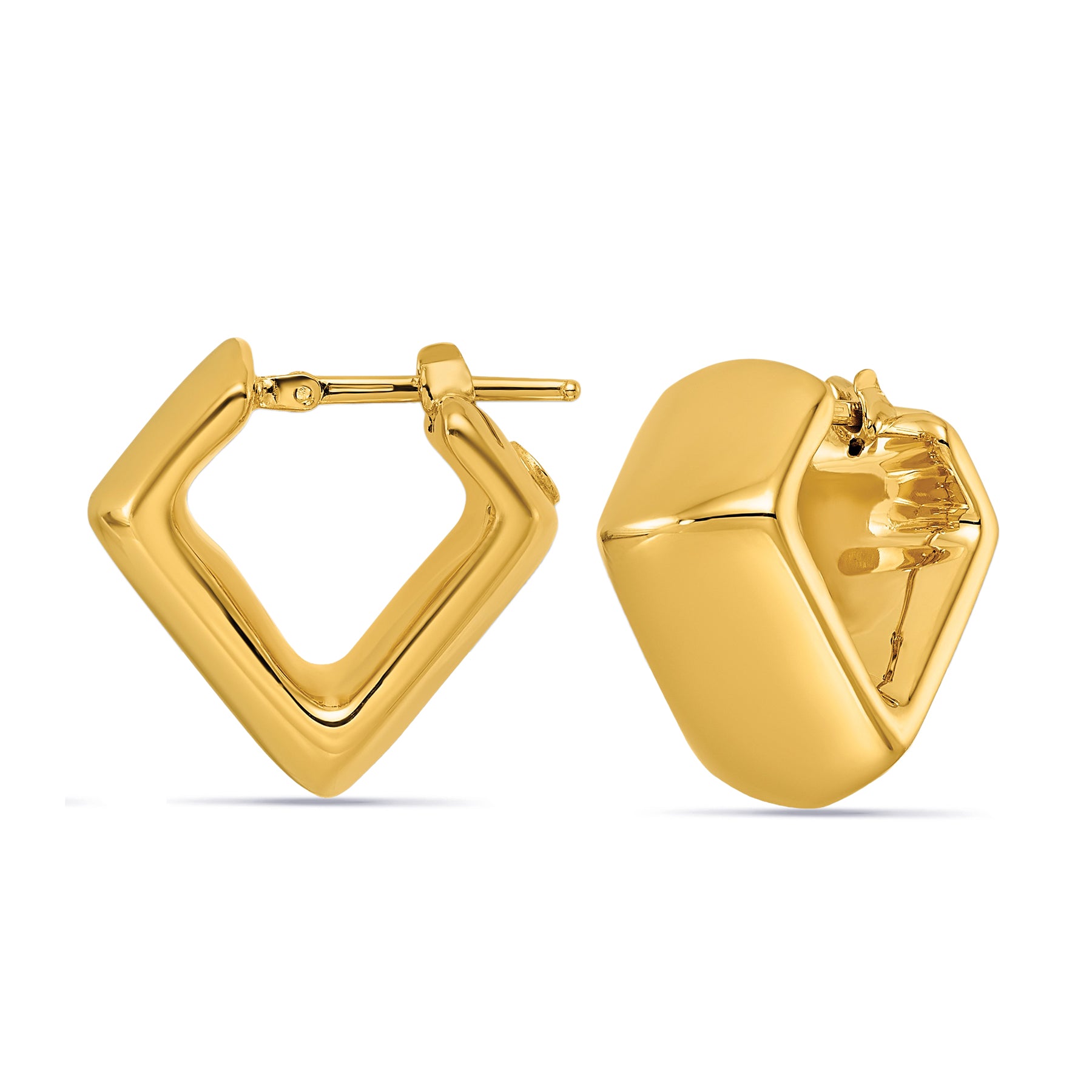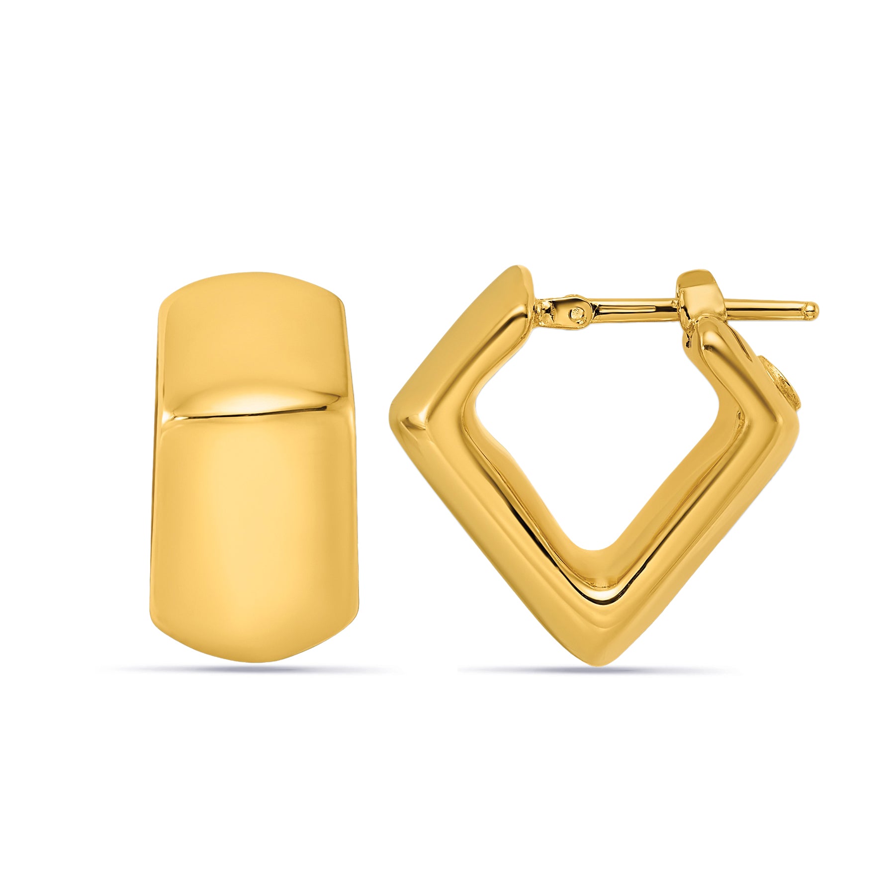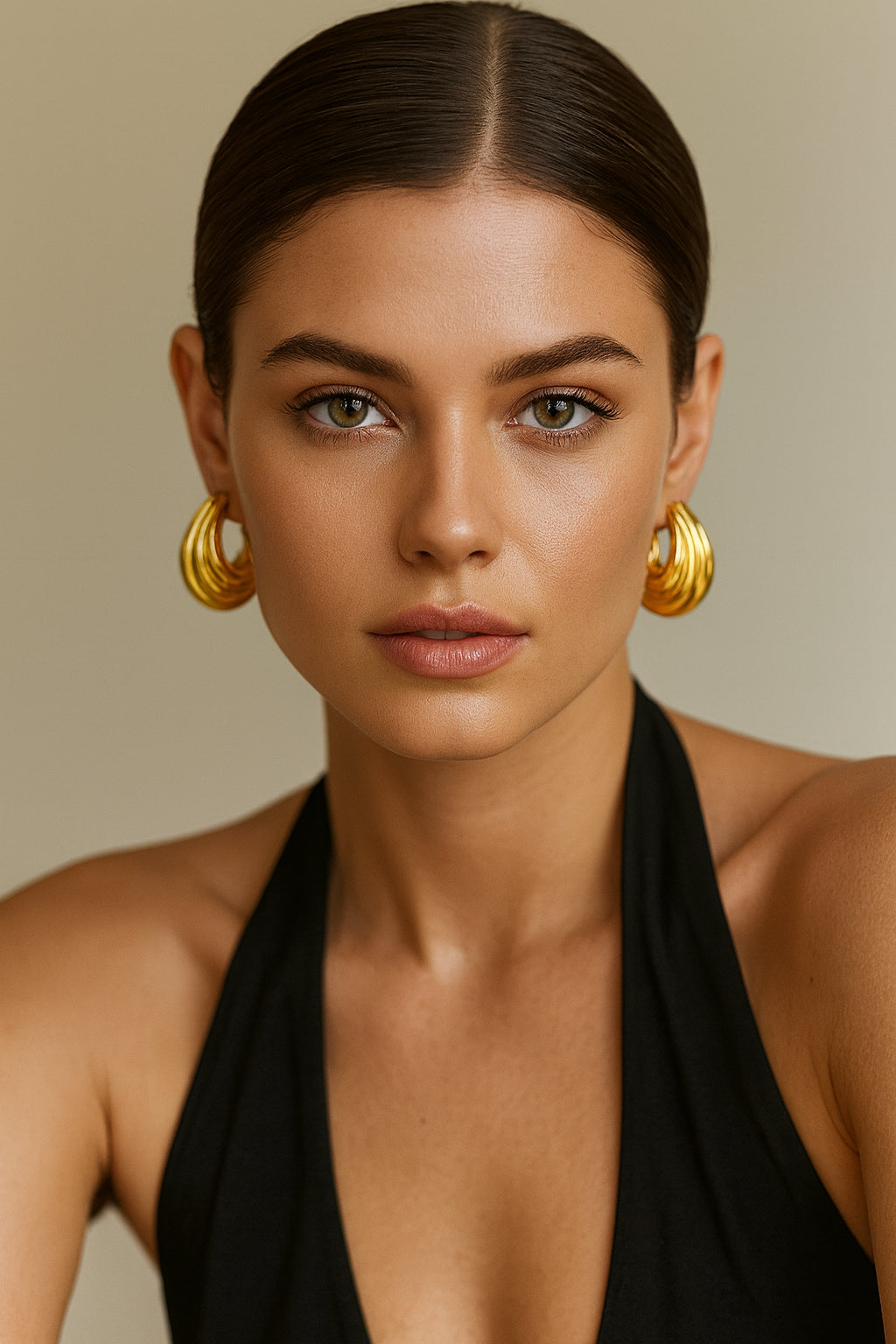 14K Solid Gold Twisted Grooved Modern Hoop Earrings