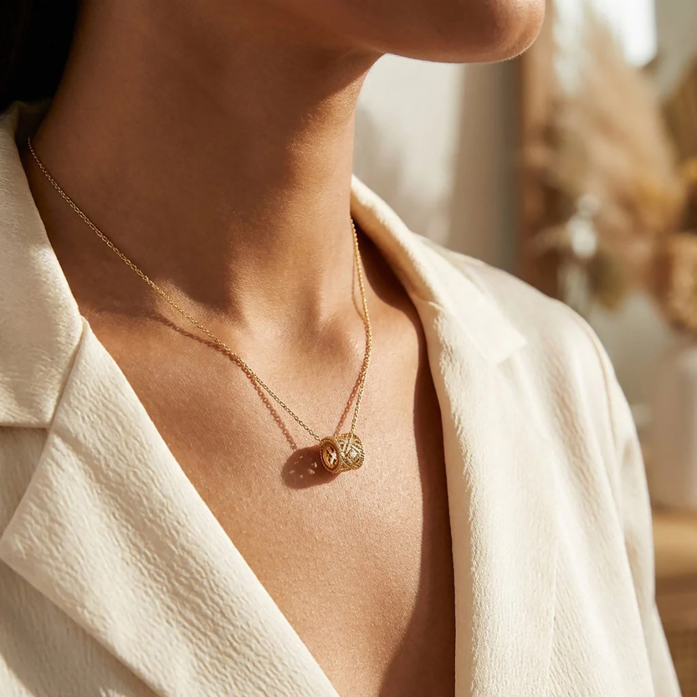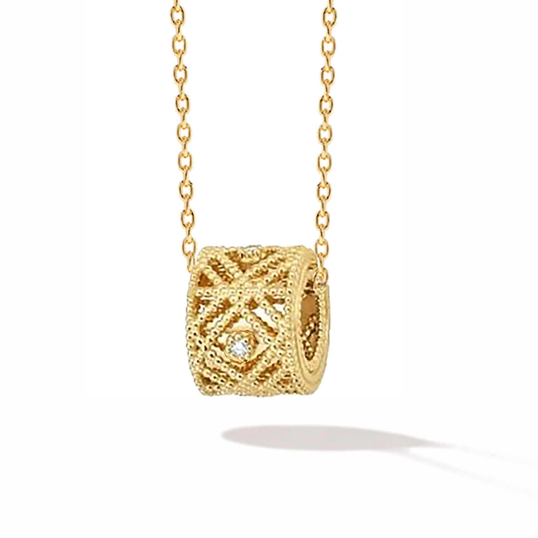 14K Gold Diamond Barrel Charm Pendant Necklace