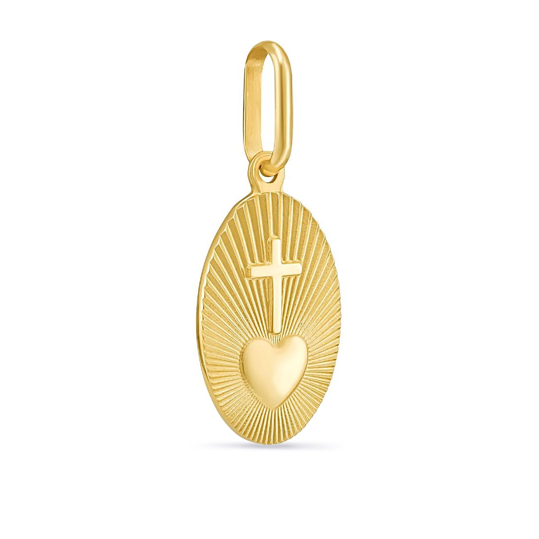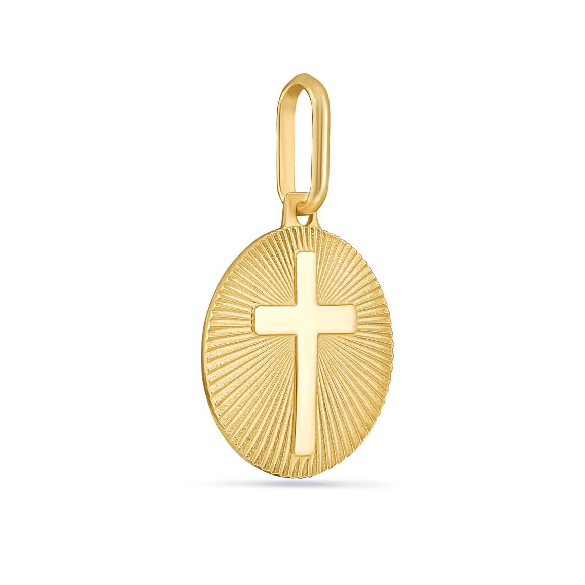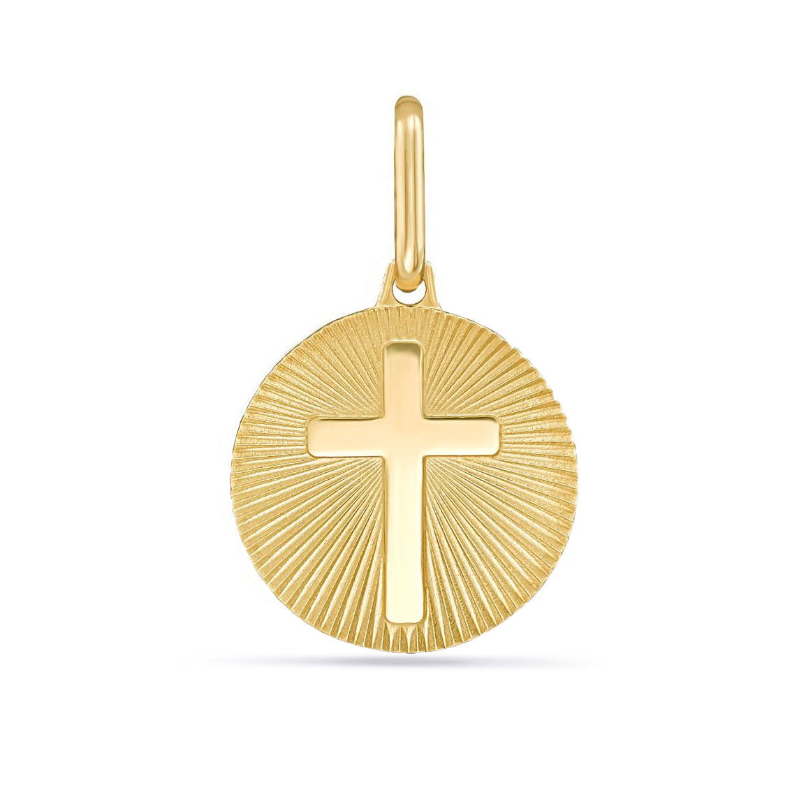 14K Gold Fluted Sunburst Cross Medallion Charm Pendant