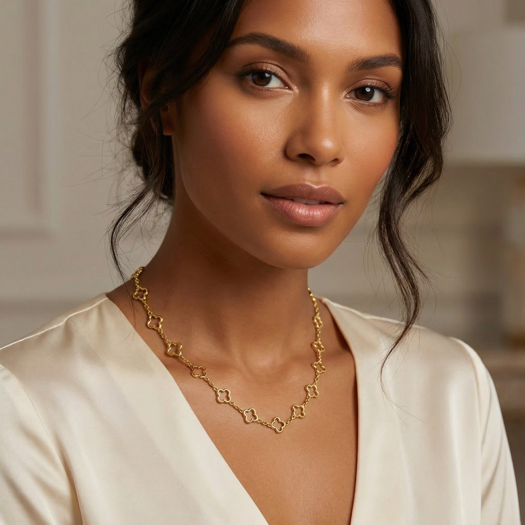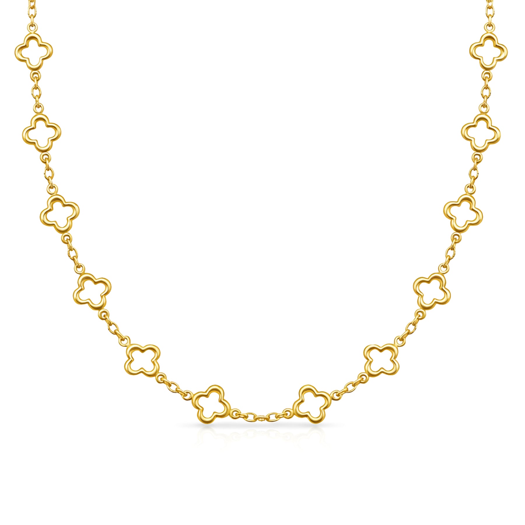 14K Gold Lucky Clover Station Necklace